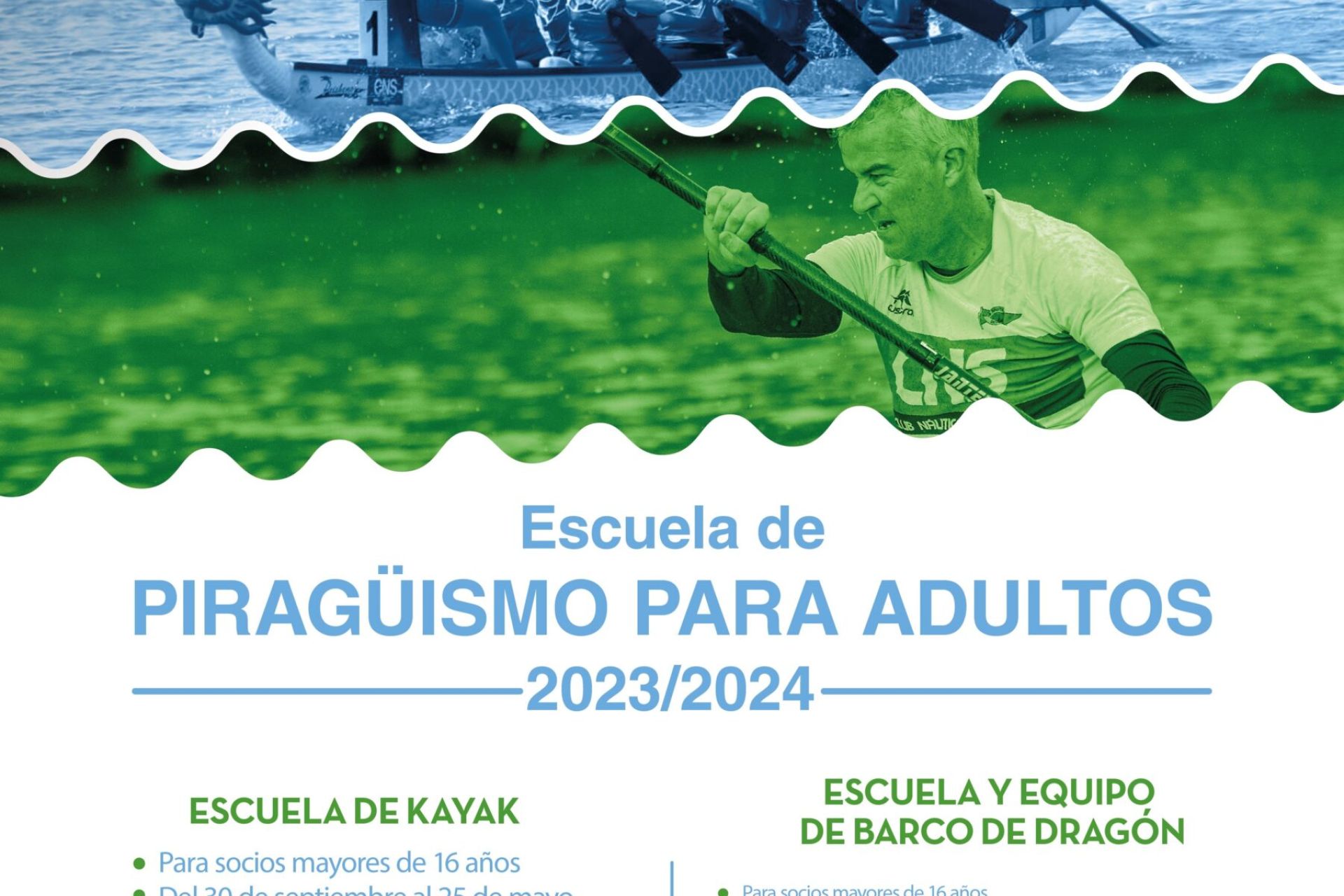 Desde el 30 de septiembre, cursos mensuales de kayak y barco de dragón dirigidos exclusivamente a socios del Club Náutico mayores de 16 años. Precio, 15€/mes. Reunión informativa, el viernes 22 a las 19:30 h en los salones sociales.