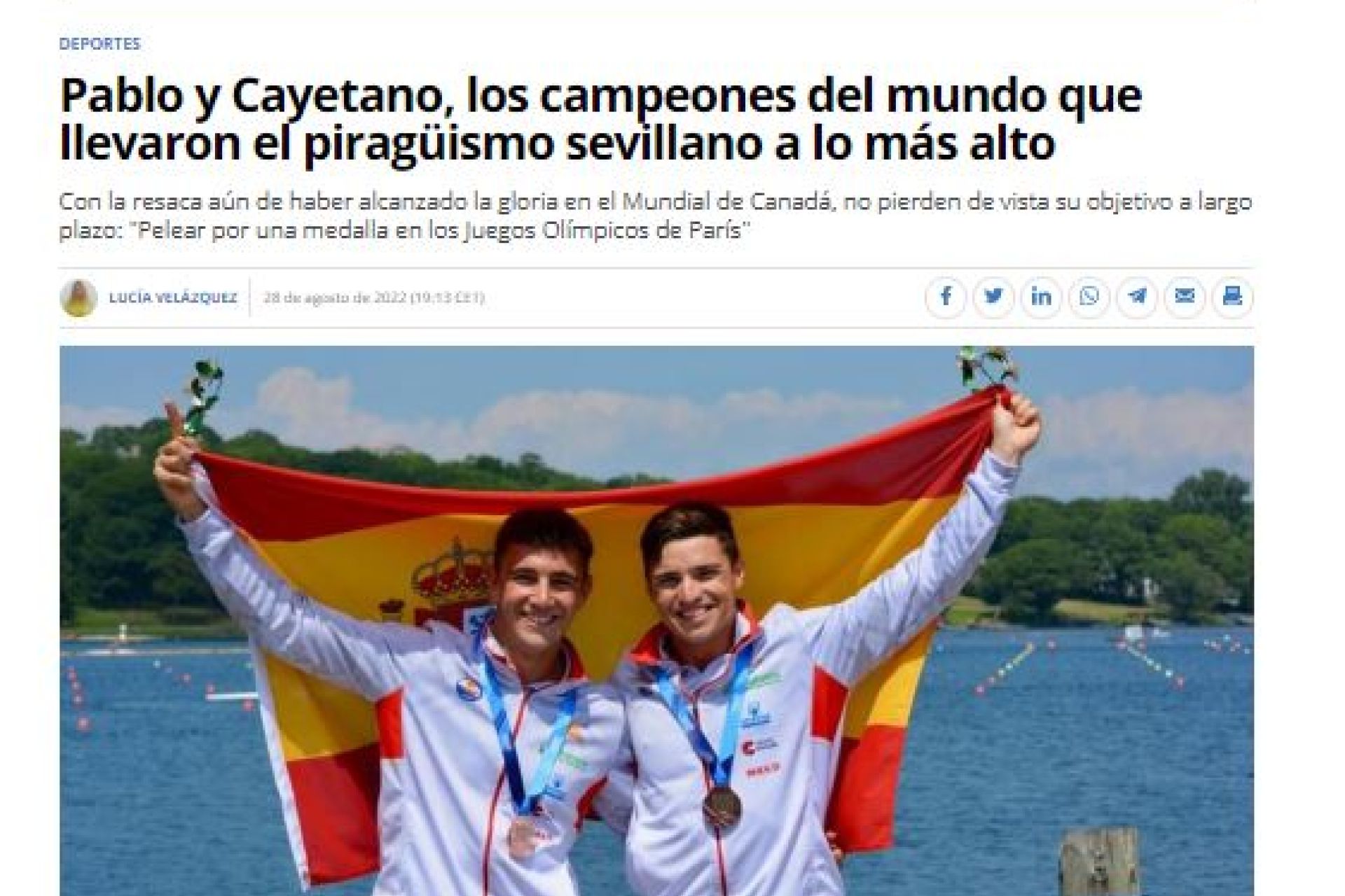 Reportaje sobre los flamantes campeones del mundo y diplomas olímpicos de piragüismo del Club Náutico Sevilla publicado en el portal Lavozdelsur.es Por Lucía Velázquez.