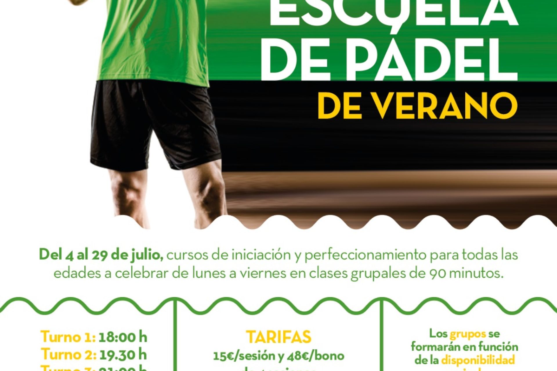 Hasta el día 29 de julio, cursos de iniciación y perfeccionamiento para todas las edades a celebrar de lunes a viernes en clases grupales de 90 minutos a las 18:00, 19:30 y 21:00 horas.