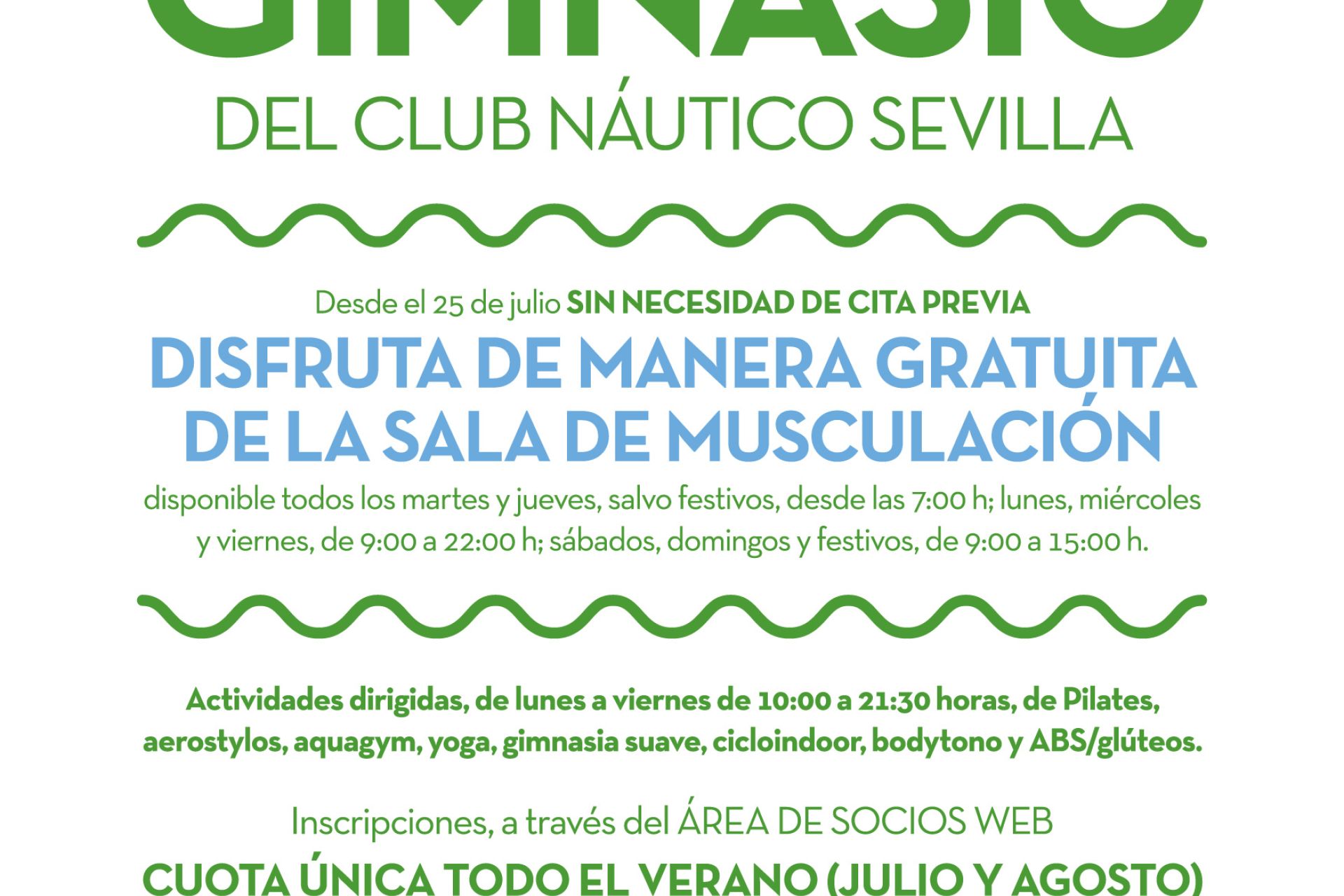 Desde el próximo lunes, día 25 de julio, los socios del Club Náutico podrán acceder de forma libre y sin necesidad de reservar previamente a la sala de musculación y las calles para nado deportivo de las piscinas olímpica y de 25 metros.