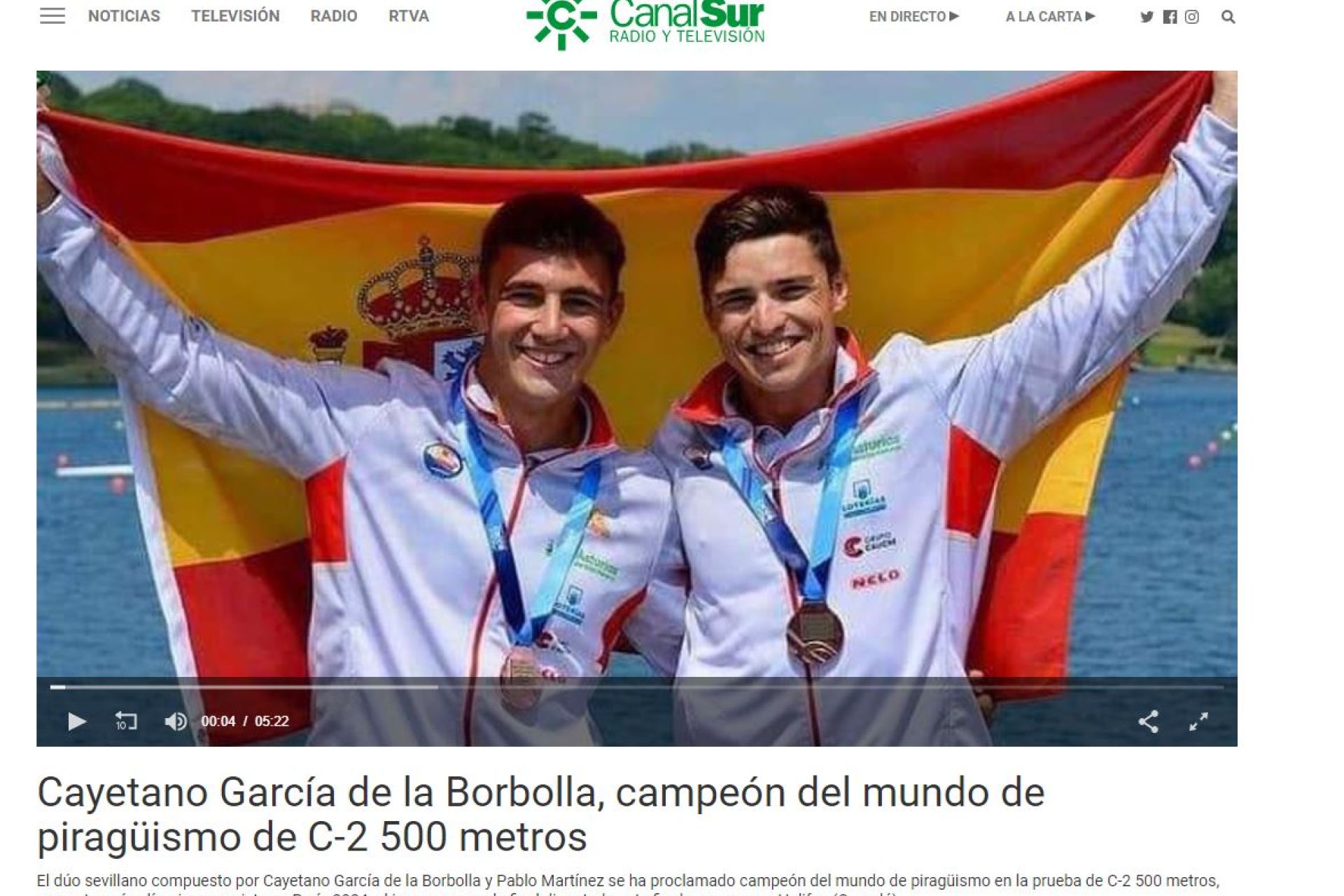 Título mundial para los canoístas del Club Náutico Sevilla Cayetano García de la Borbolla Yaque y Pablo Martínez, campeones en C-2 500 en Halifax (Canadá), donde Carolina García es cuarta en K-4 500, Javier Reja noveno en VL3 200 y Ghailene Khattali no accede a las finales de C-1.