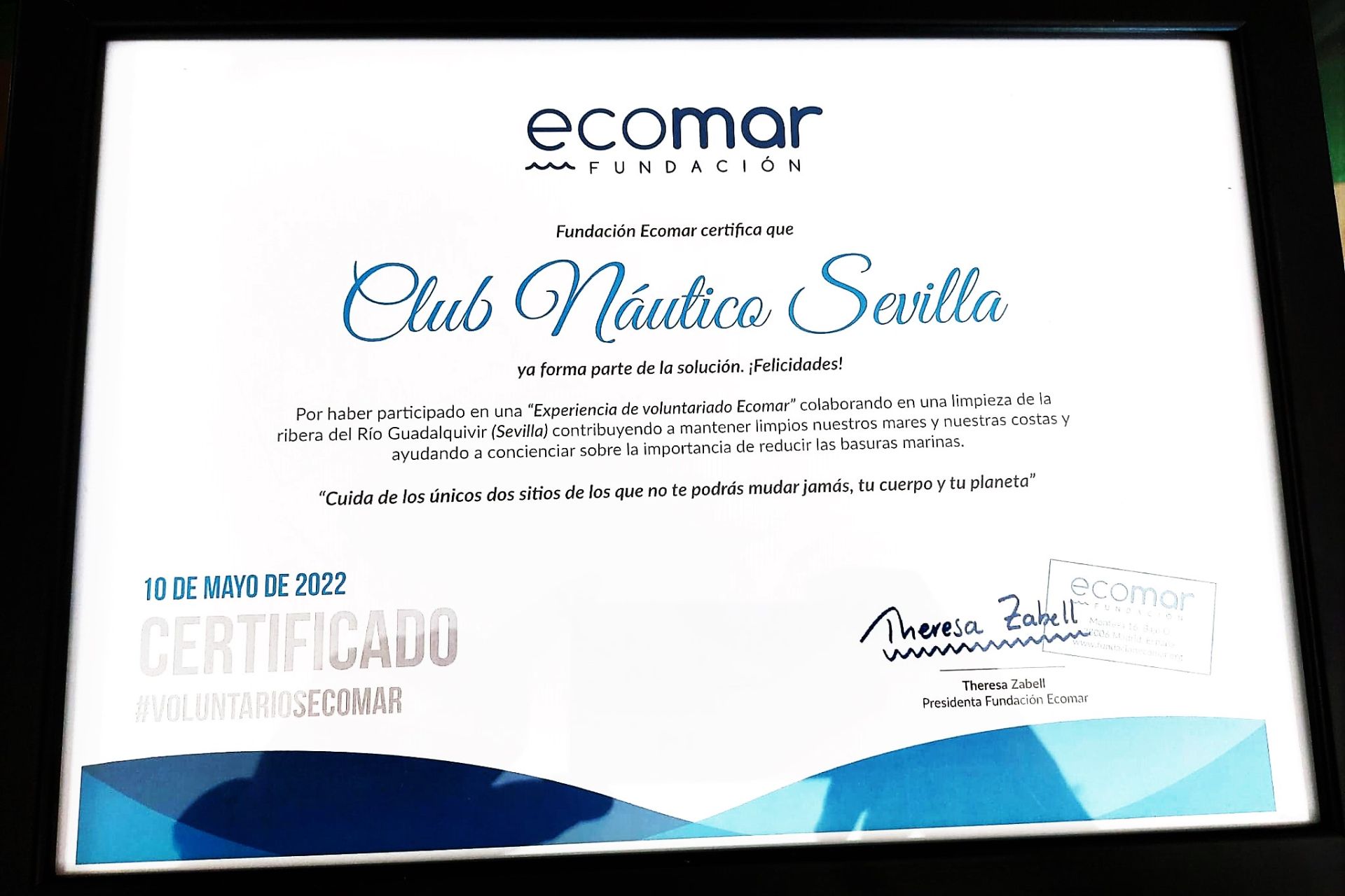 El Club Náutico obtiene el certificado de voluntariado de la Fundación ECOMAR