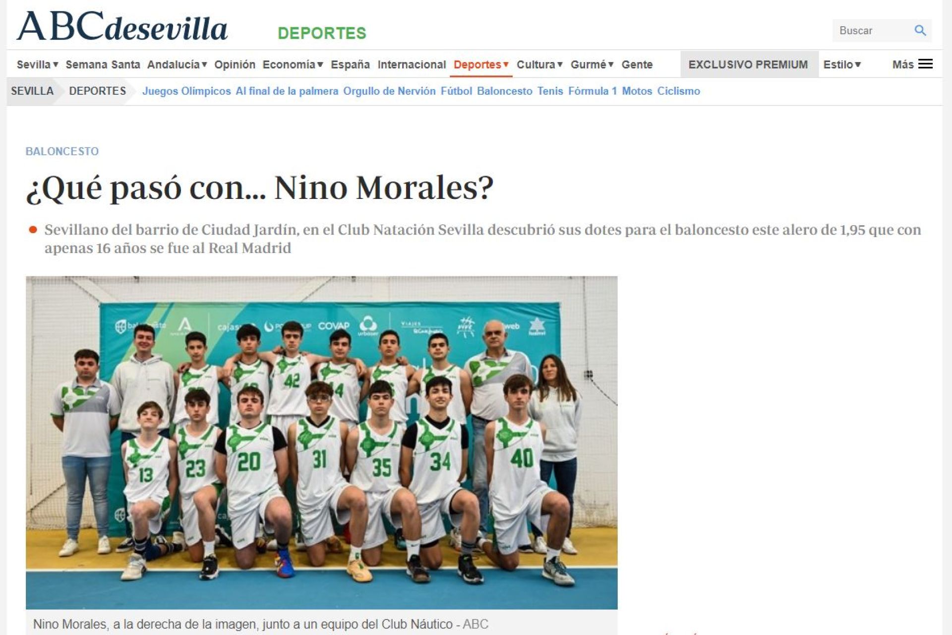 Reportaje publicado en ABC de Sevilla sobre el que fuera uno de los primeros jugadores sevillanos de baloncesto en la élite y que actualmente forma parte del cuadro de entrenadores del Club Náutico. Por Sergio Ávila.