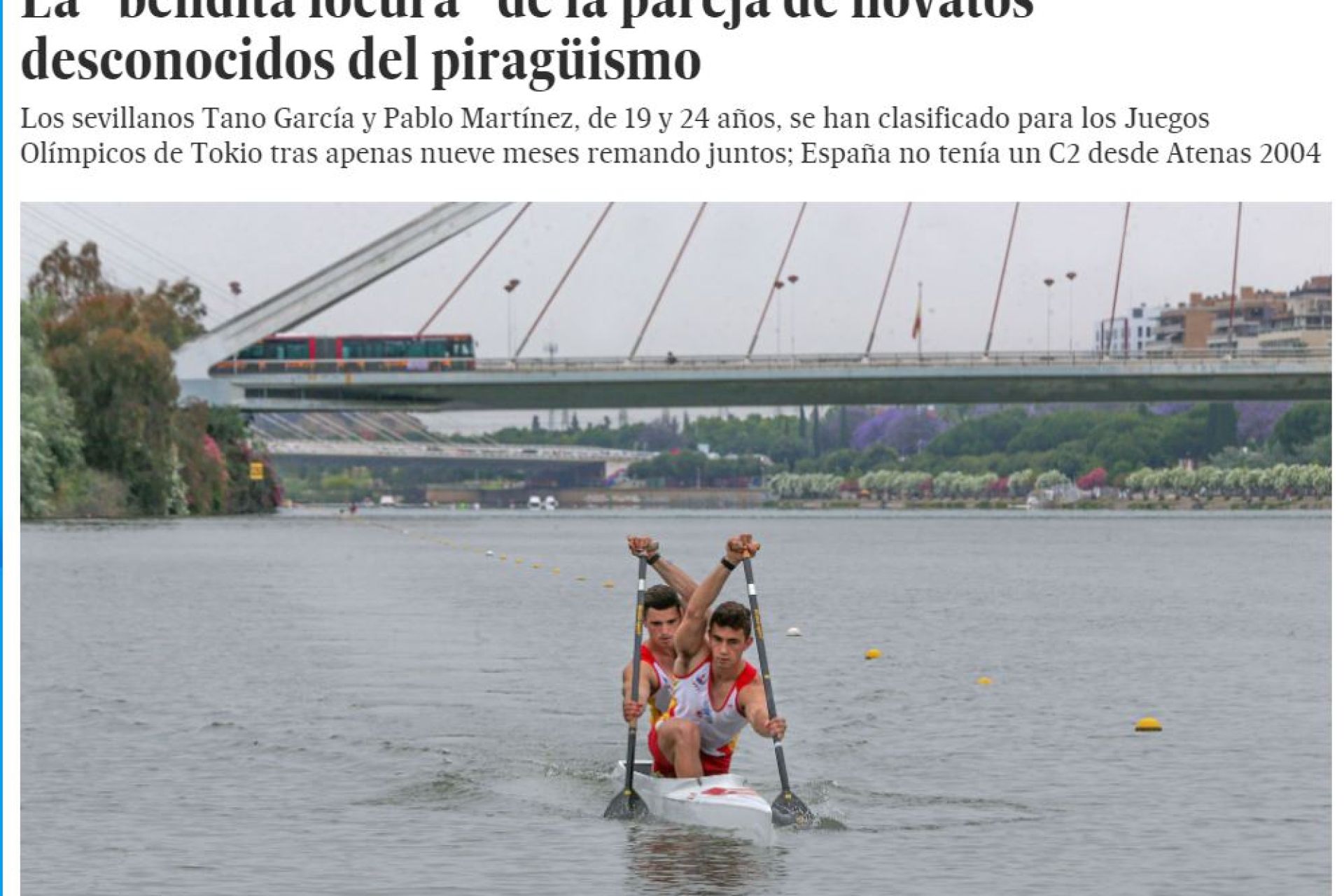 Reportaje publicado en El País sobre los canoístas del Club Náutico Sevilla Cayetano García de la Borbolla y Pablo Martínez, que participarán en los Juegos de Tokio en C-2 y C-1 1.000 metros. Por Eleonora Giovio.