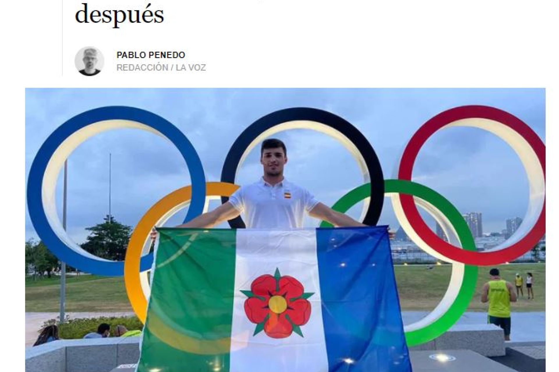 Reportaje sobre el palista olímpico del Club Náutico Sevilla Pablo Martínez, diploma en los Juegos de Tokio en C-2 1.000 con Cayetano García de la Borbolla, publicado en La Voz de Galicia. Por Pablo Penedo.