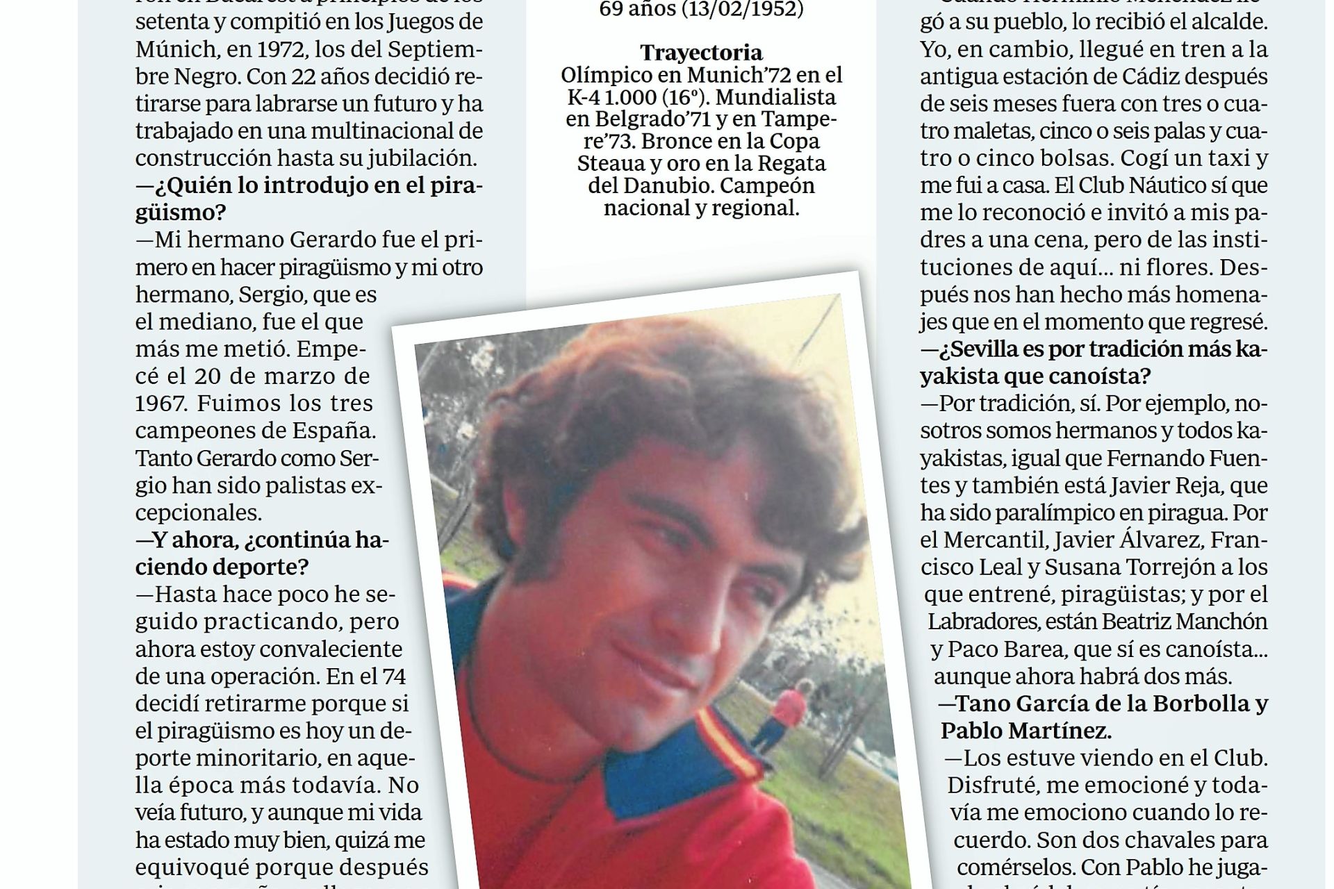 Entrevista realizada en el diario ABC de Sevilla al que fuera piragüista olímpico del Club Náutico en los Juegos de Munich 72. Por Sergio Ávila.