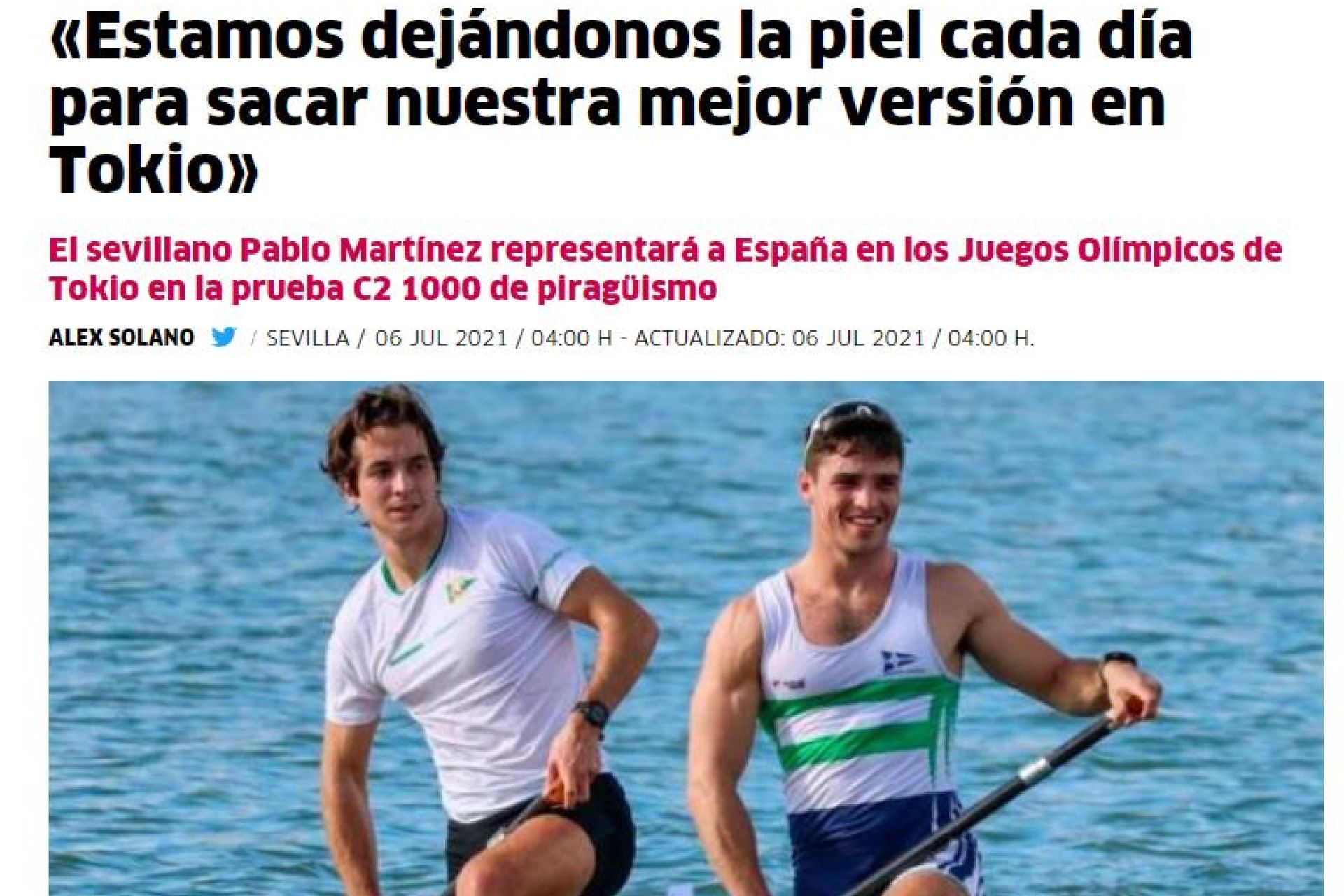 Entrevista al canoísta olímpico del Club Náutico Sevilla publicada en El Correo de Andalucía Por Álex Solano #somosnáutico