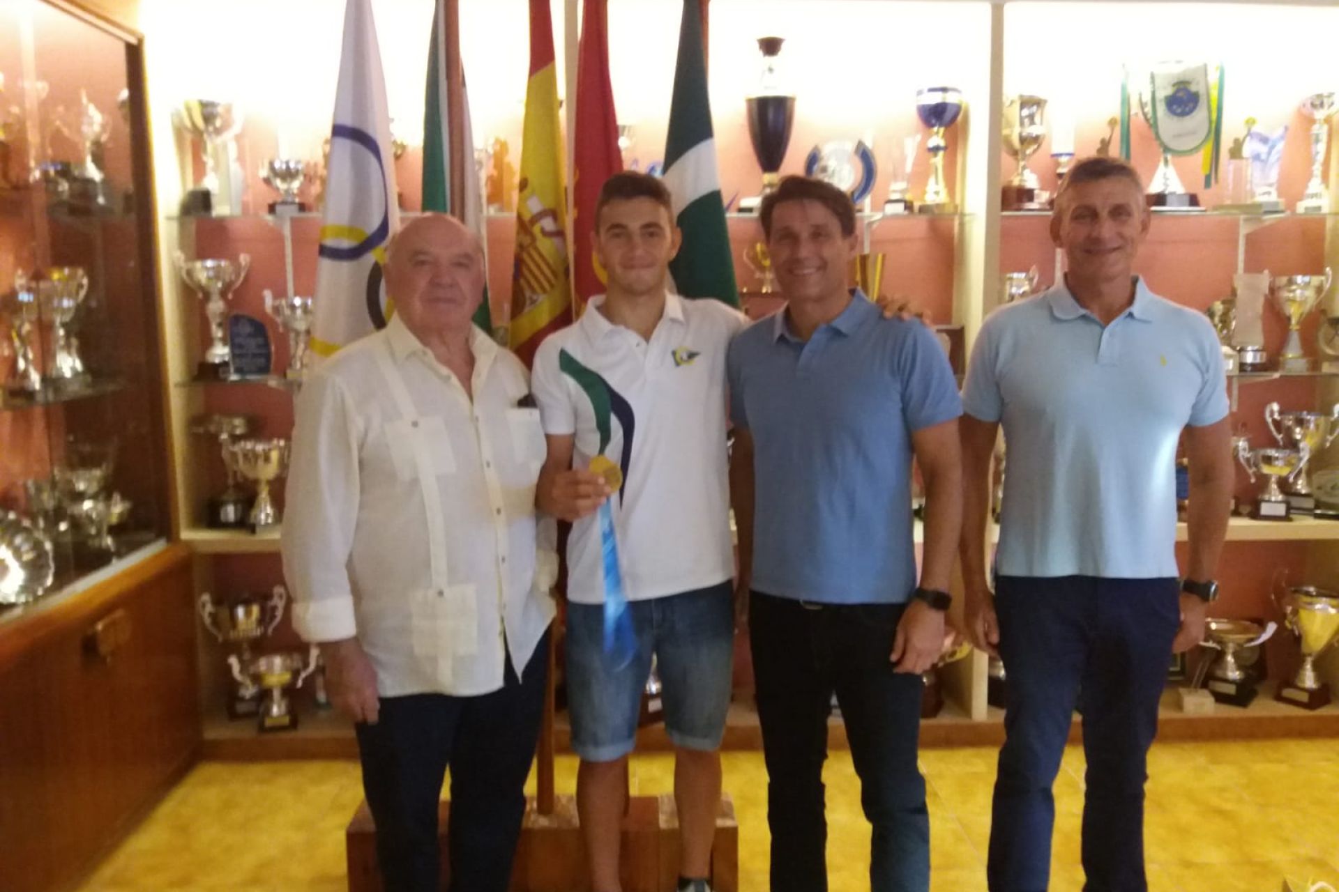 El palista del Club Náutico Sevilla ha sido recibido por el presidente de la entidad para reconocer oficialmente su logro internacional.