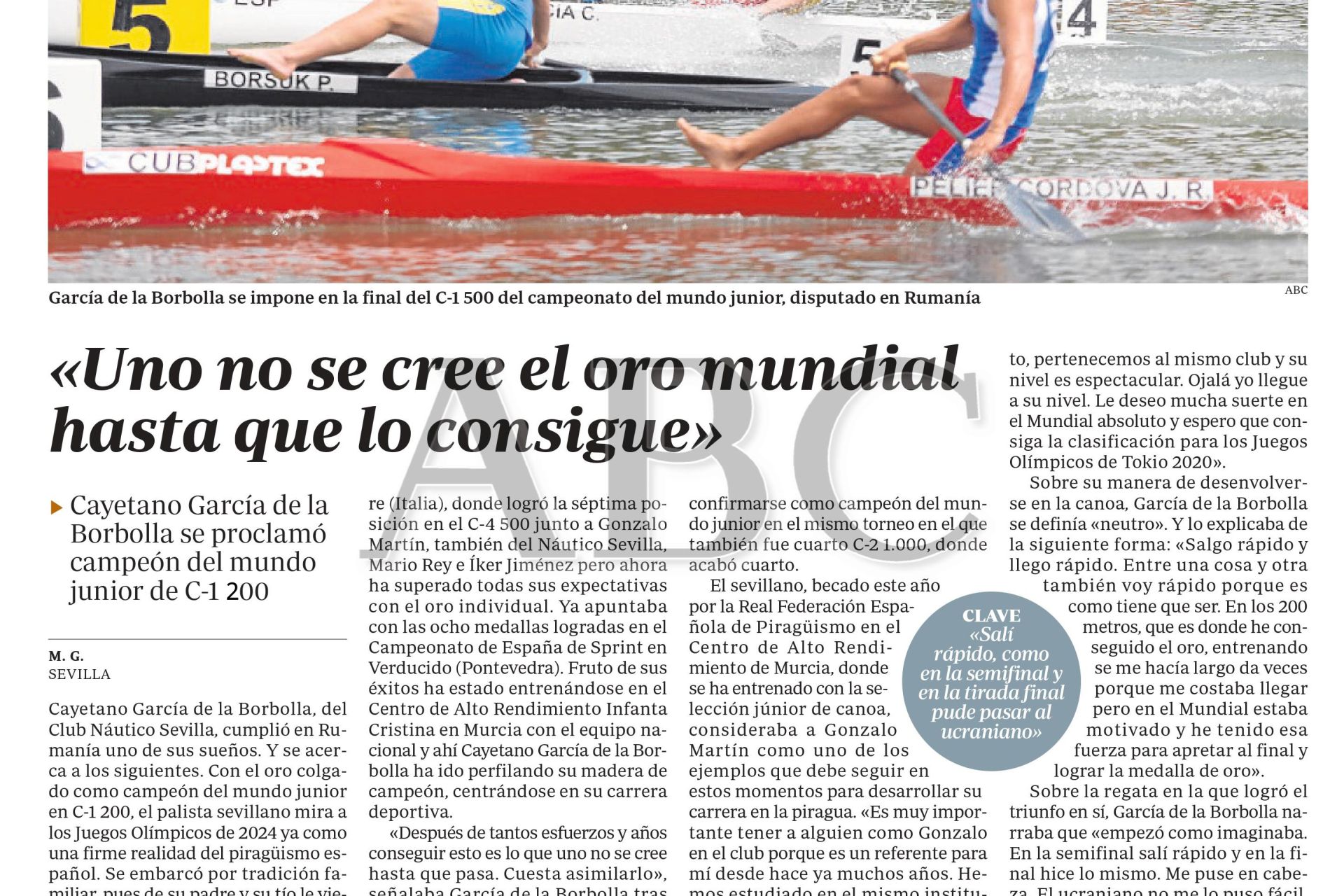 Entrevistas publicadas en los diarios ‘ABC’ y ‘Estadio Deportivo’ del flamante campeón mundial júnior de piragüismo del Club Náutico Sevilla: «Vencer una vez es perder muchas».