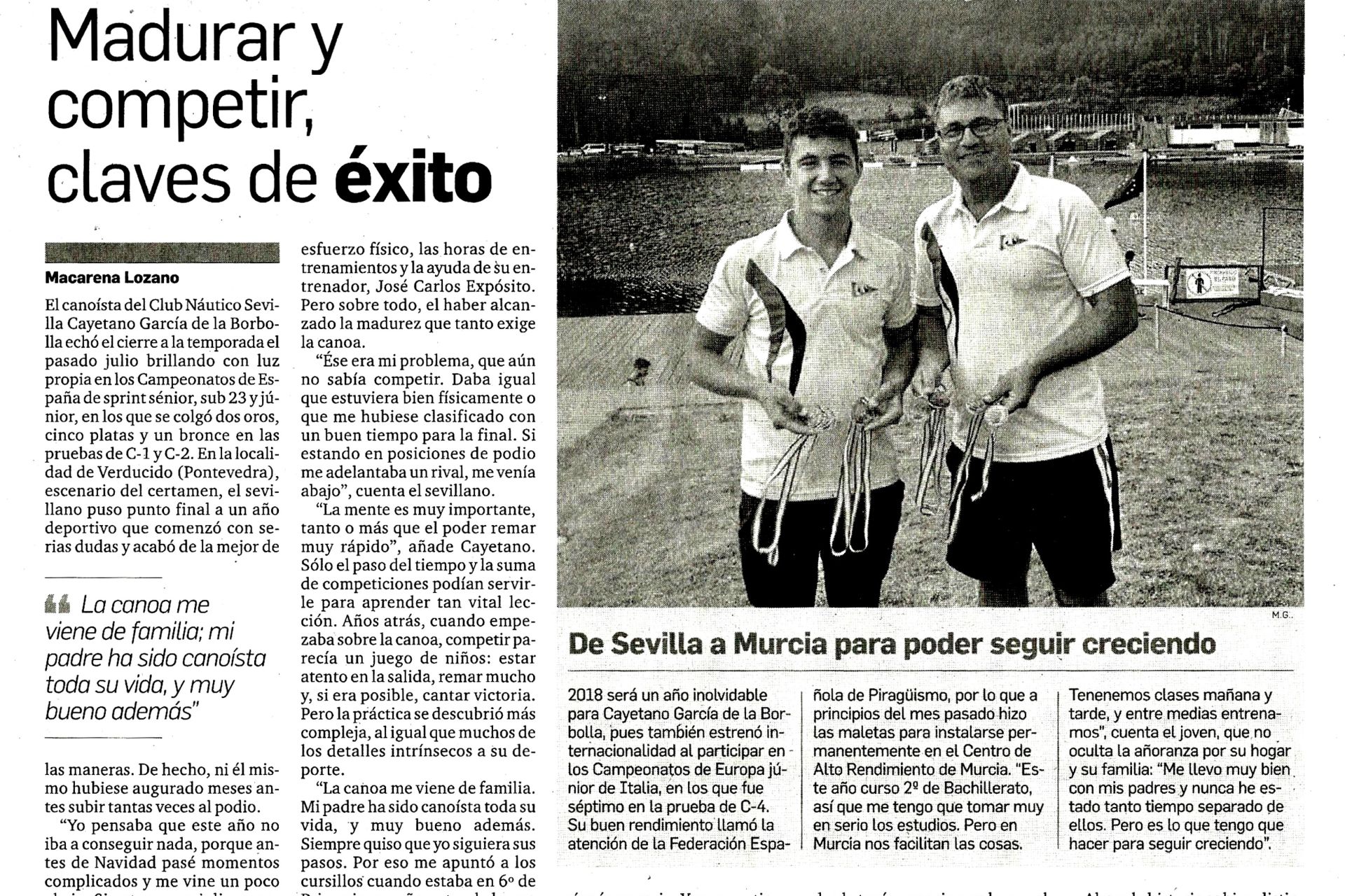 Reportaje del canoísta internacional del Club Náutico Sevilla publicado en ‘Diario de Sevilla. Por Macarena Lozano.