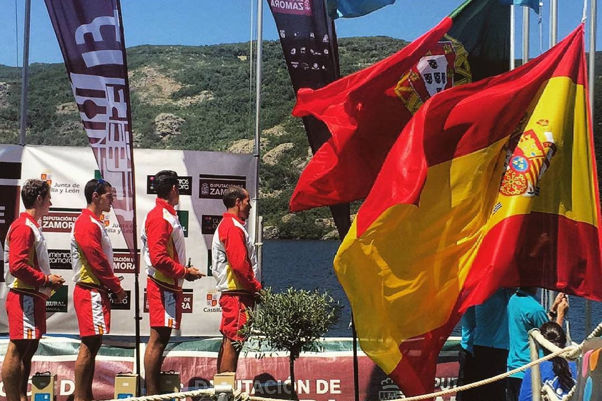Victoria del equipo español en la cita de K-4 de Valladolid y Zamora con la presencia del palista del Club Náutico Sevilla Ramón Lecumberri.