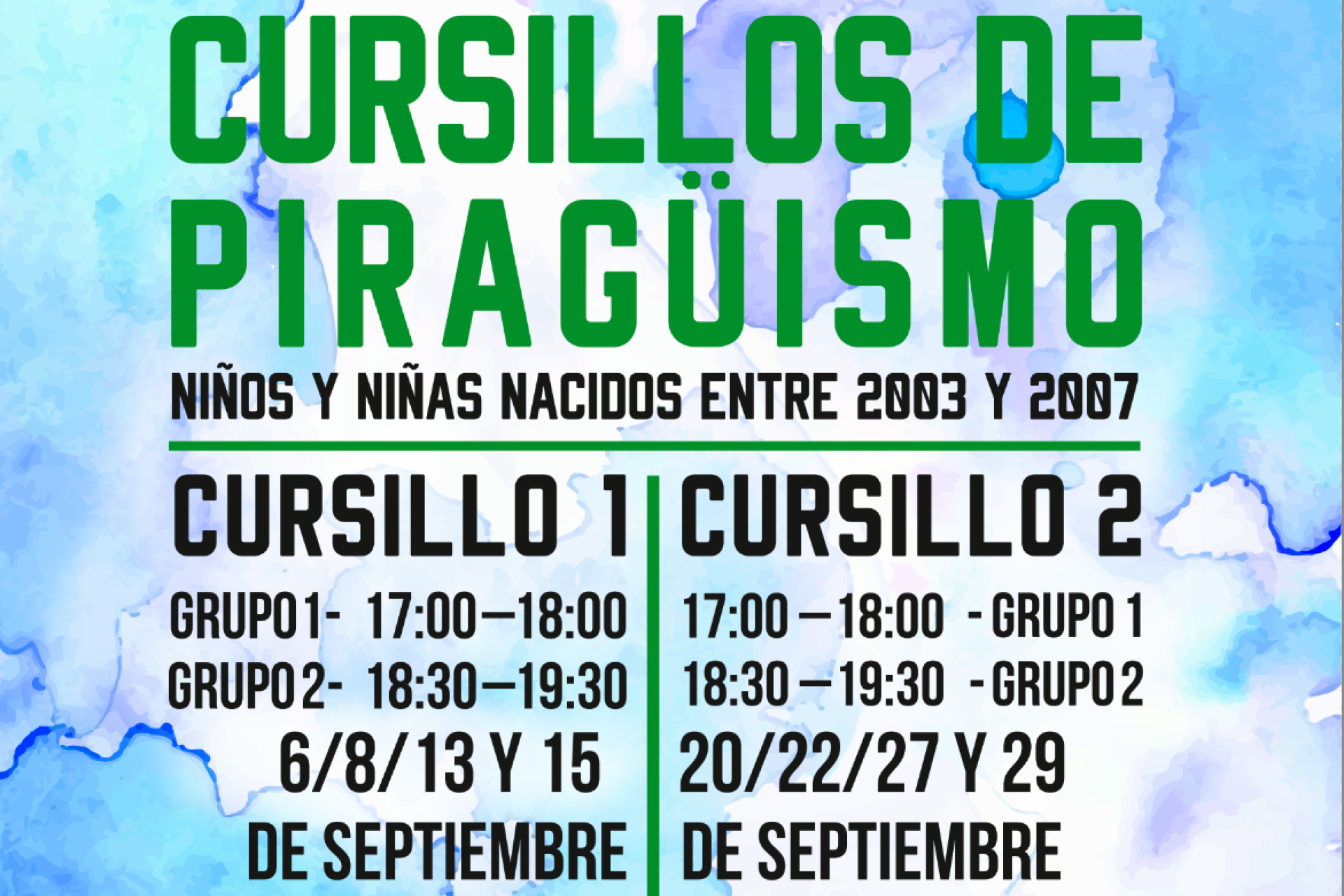 Dirigidos a socios y no socios nacidos entre los años 2003 y 2007, a celebrar del día 6 al 15 y del 20 al 29.