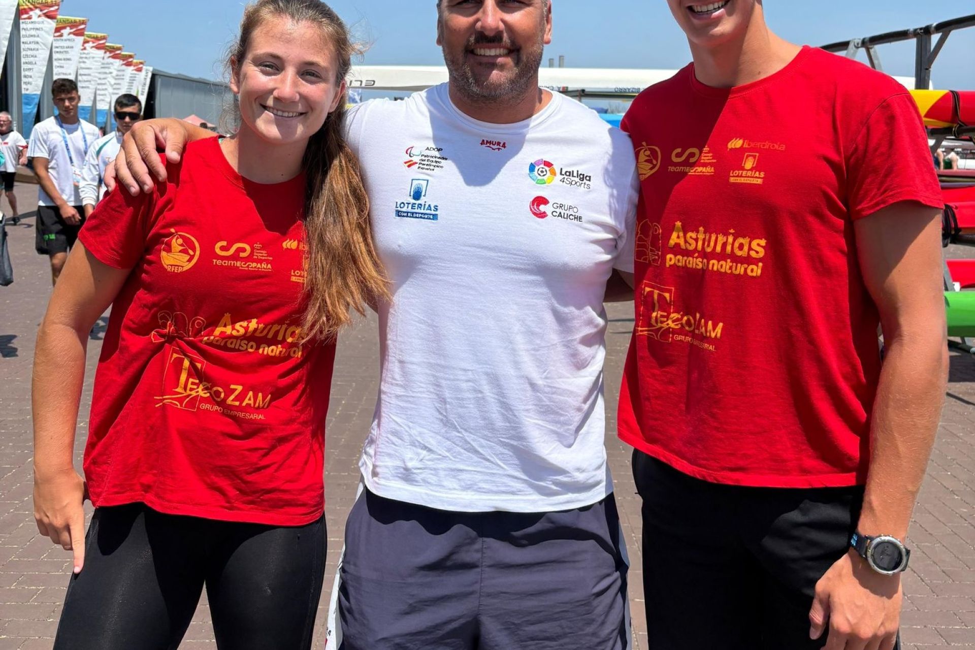 El Club Náutico Sevilla, representado en la cita portuguesa de Montemor-o-Velho por la doble plata europea Elena Gómez-Millán (C2 200 y C4 500 sub23) y Gonzalo Granados (K4 500 juvenil), acompañados por el técnico Germán García.