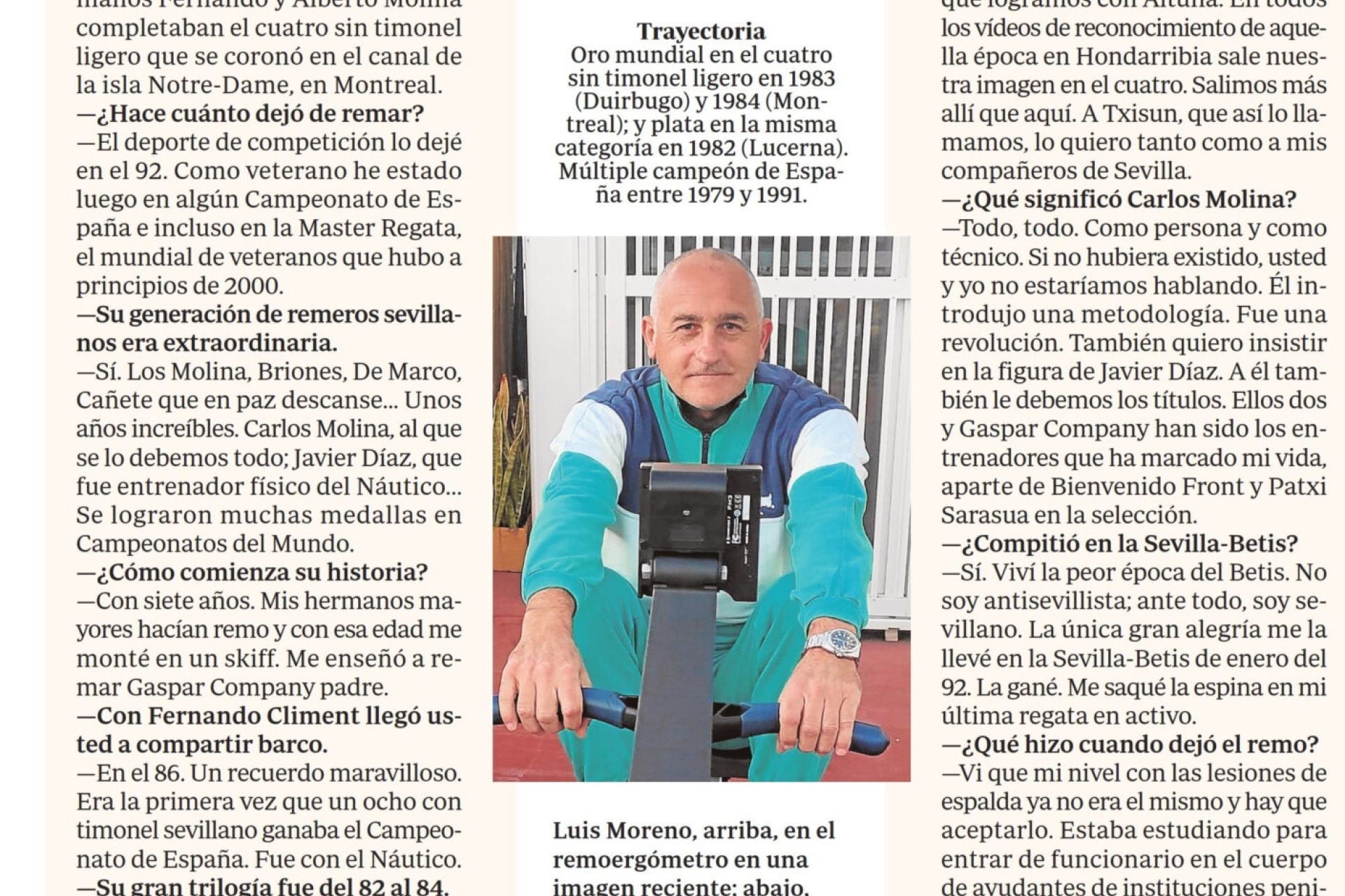 Entrevista al excampeón mundial de remo del Club Náutico Sevilla publicada en ABC de Sevilla. Por Sergio Ávila.