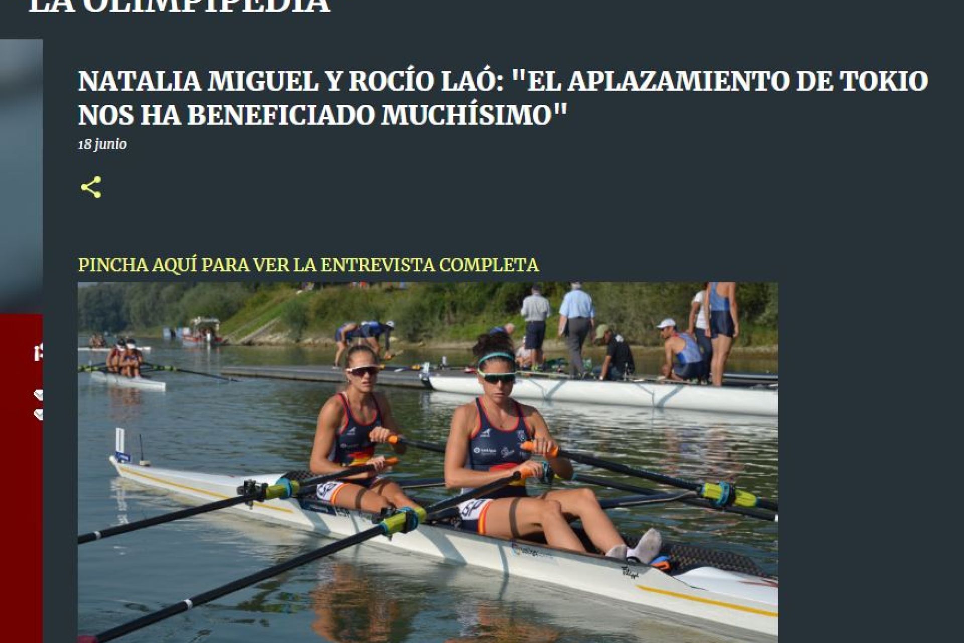 Entrevista a la internacional del Club Náutico junto a su compañera en el doble scull ligero de la selección Natalia Miguel en el portal La Olimpipedia.