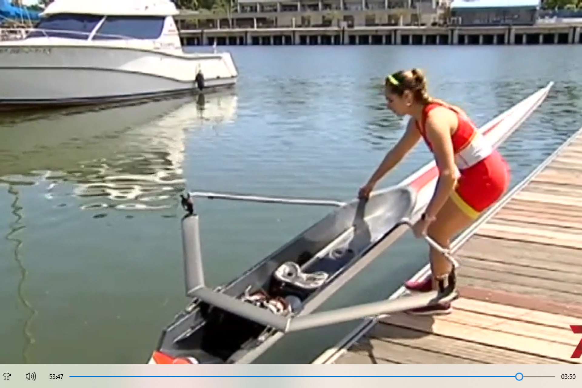 Reportaje emitido en los informativos regionales del canal 7 Televisión sobre el regreso a los entrenamientos en el Guadalquivir de los deportistas internacionales del Club Náutico Sevilla, que debían haber disputado los preolímpicos de remo y piragüismo, respectivamente.