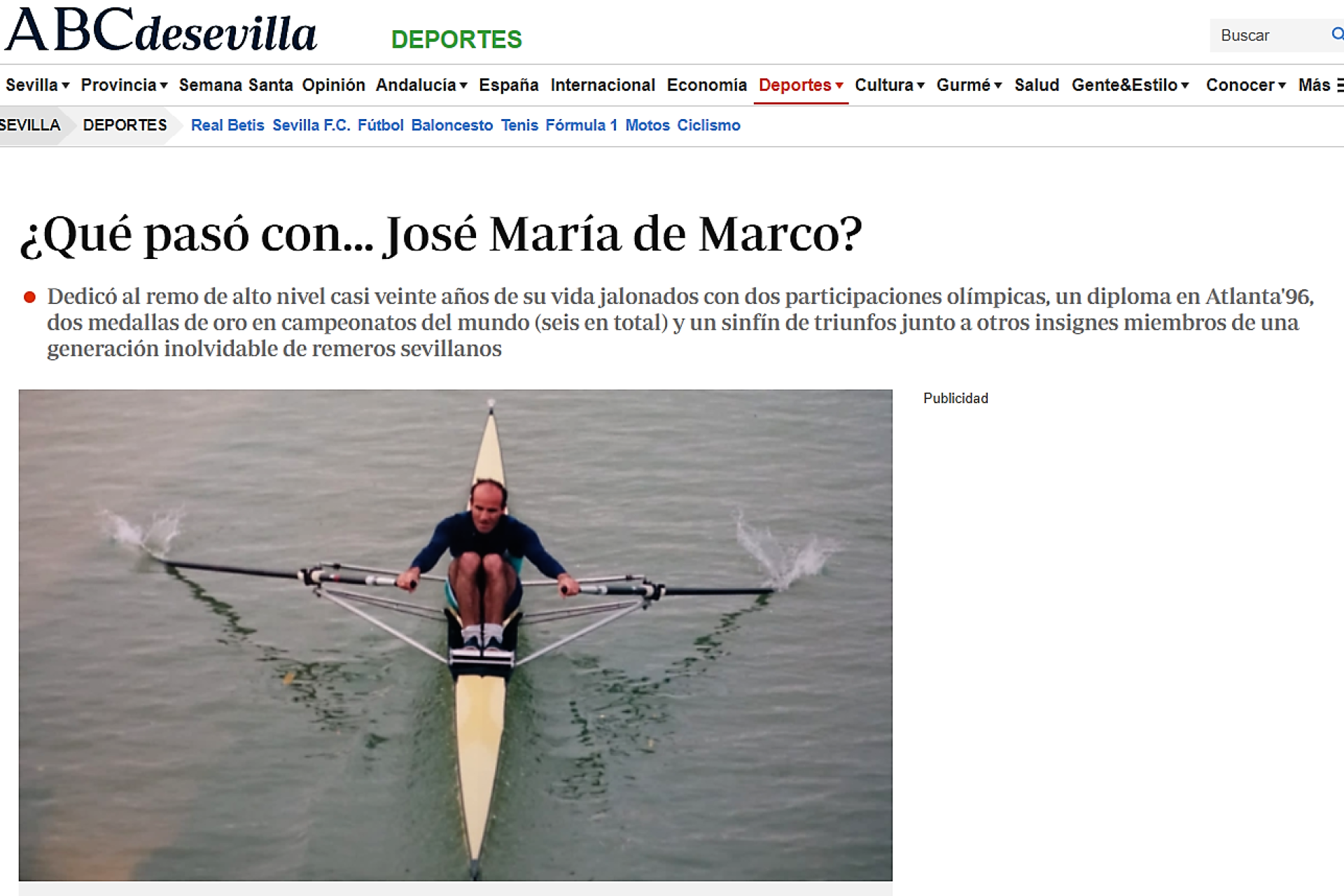 Entrevista publicada en el diario ABC de Sevilla sobre el laureado remero del Club Náutico, dos veces olímpico y bicampeón mundial. Por Sergio Ávila.