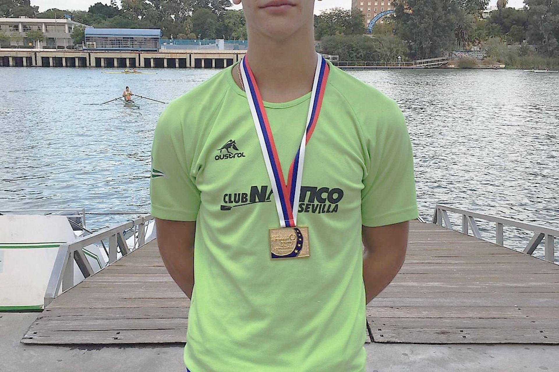 Hay que recordar que el Club Náutico Sevilla acudía con la selección española de remo al Campeonato de Europa juvenil con cinco representantes, el laureado Pablo Moreno, el entrenador Álvaro Romero y los remeros...