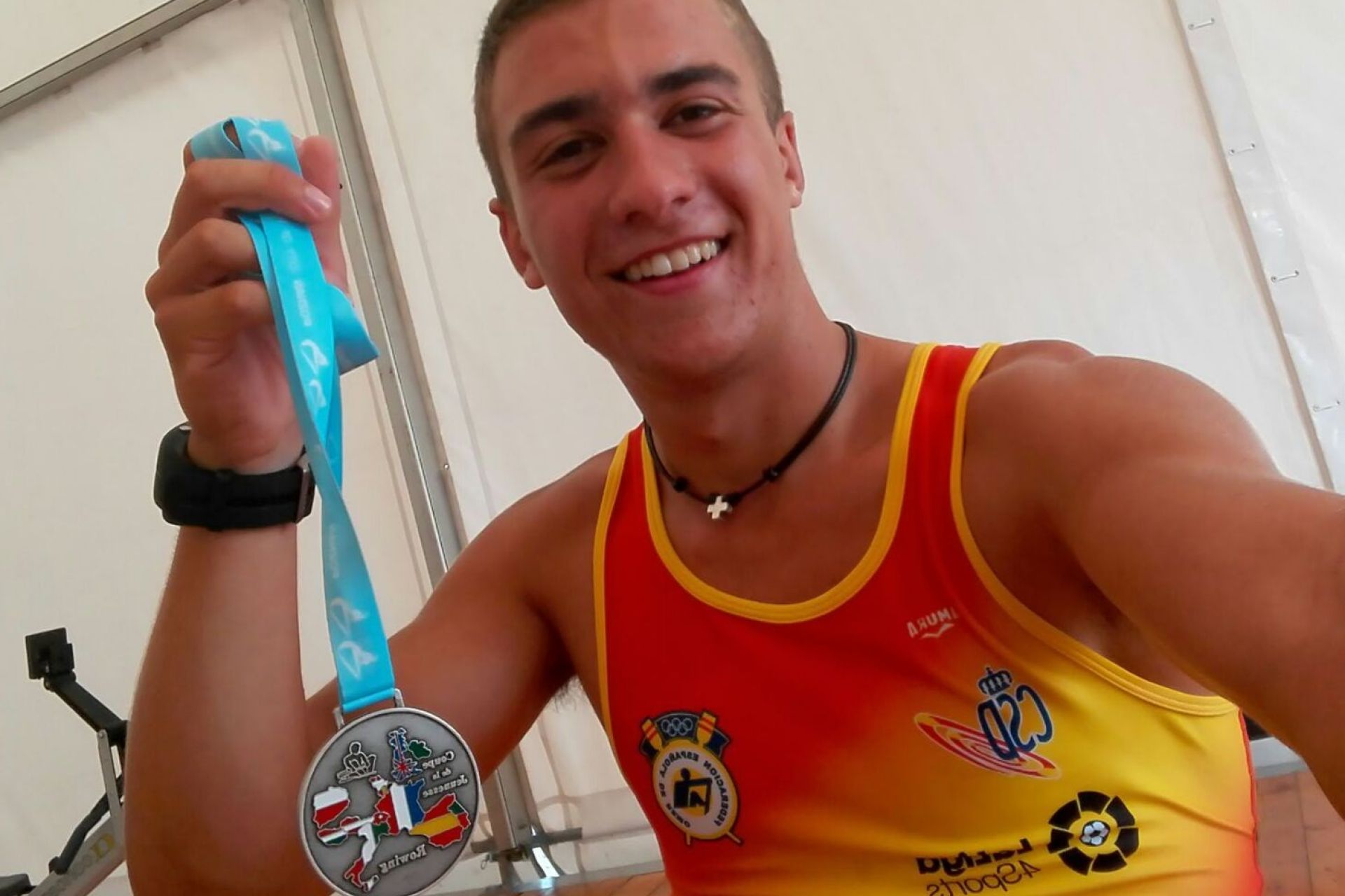 El remero del Náutico Sevilla se cuelga dos platas en tierras polacas a bordo del cuatro scull de la selección española juvenil.
