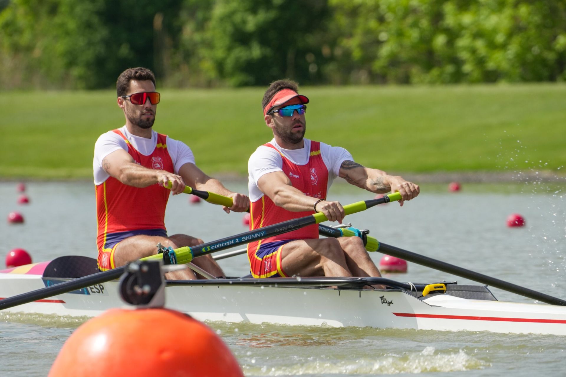 Medalla de plata en el último ensayo preolímpico ante de los Juegos de París para el dos sin de los remeros del Club Náutico Sevilla Jaime Canalejo y Javier García.