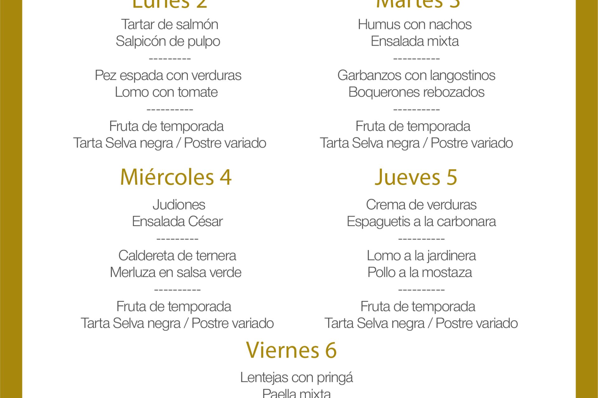 Disponible a mediodía en la cafetería del salón social desde el lunes 17 al viernes 21 de noviembre al precio de 10€/persona (IVA, pan/picos y una bebida incluidos).