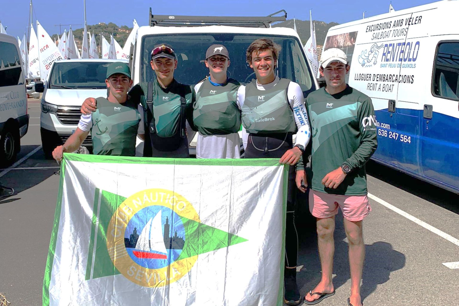 Flota de oro en Sant Feliu de Guixols (Gerona) para los regatistas del Club Náutico Sevilla Alberto Medel (31º) y Eduardo Orihuela (38º), a los que acompañaban José Medina (67º), Juan Gómez (73º) y el técnico Miguel Muñoz.
