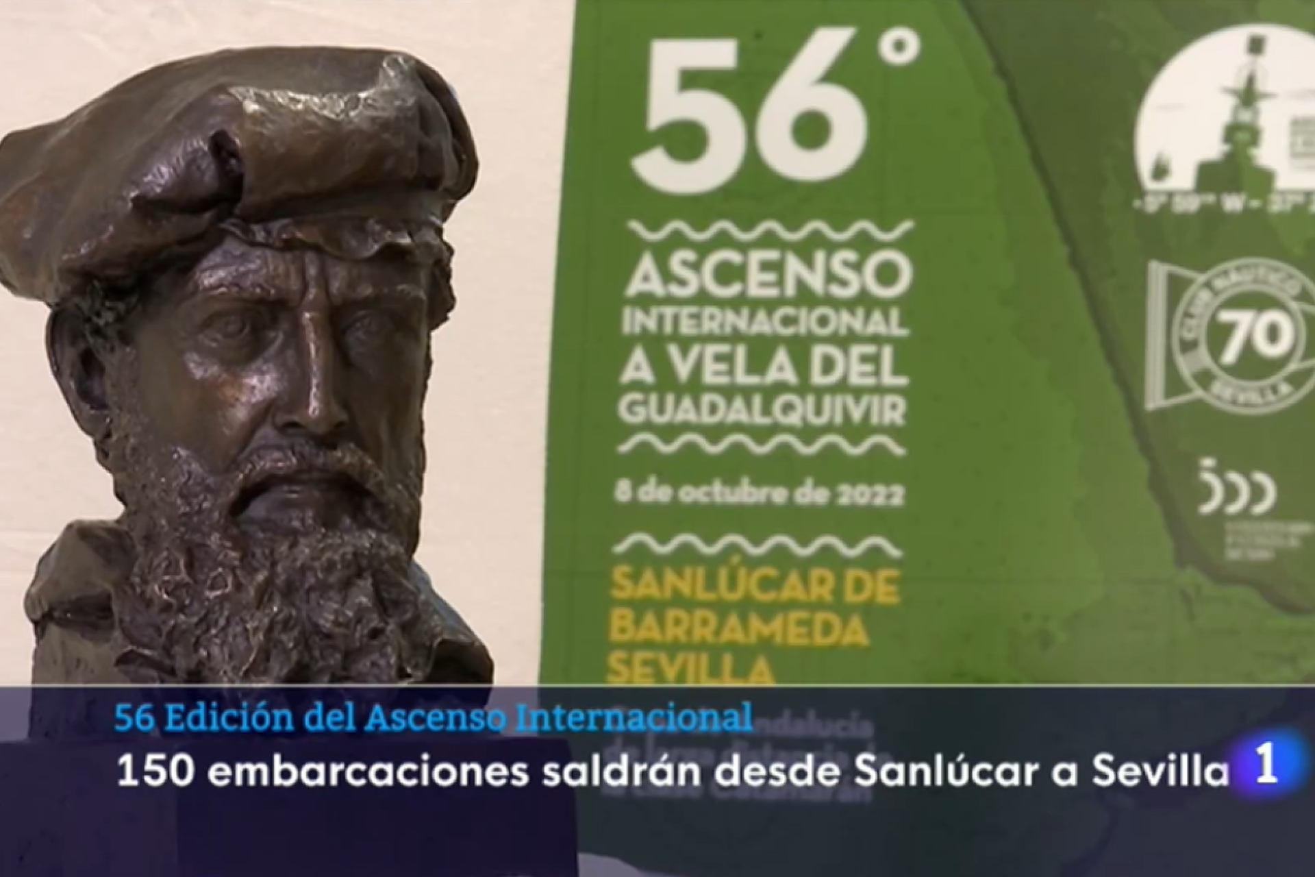 Noticias emitidas en los informativos territoriales de Televisión Española en Andalucía y Canal Sur Televisión y los locales de PTV Sevilla sobre la presentación de la prueba organizada por el Club Náutico Sevilla a celebrar este sábado, 8 de octubre, entre Sanlúcar de Barrameda y la capital hispalense como epílogo a los actos conmemorativos del V Centenario de la primera vuelta al mundo a vela.