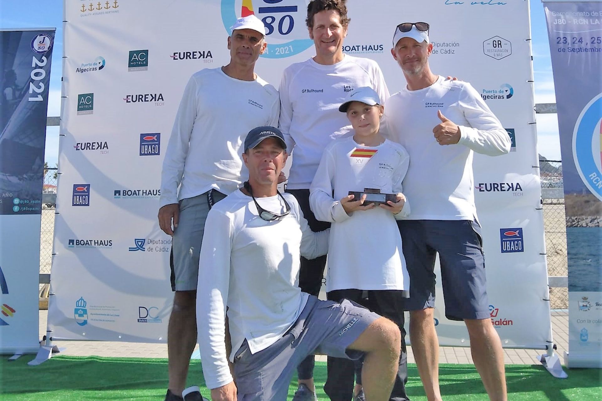 El barco con grímpola del Club Náutico Sevilla ‘GP Bullhound’, bronce en la cita nacional de La Línea de la Concepción.