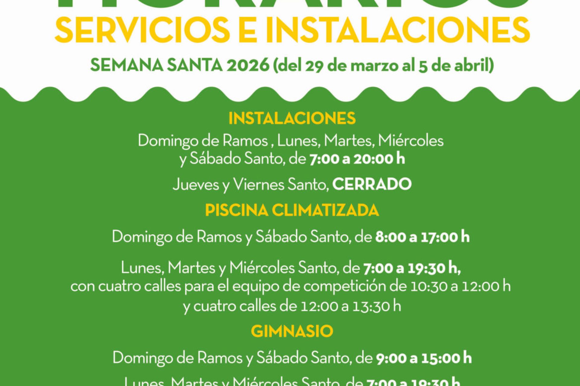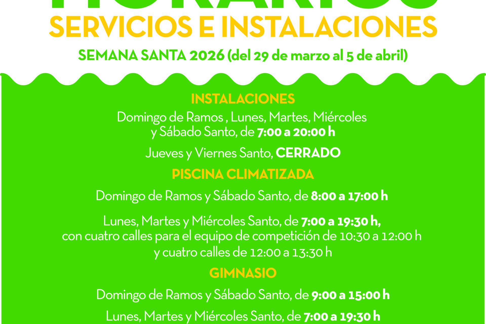 Horarios especiales de las instalaciones y los distintos servicios desde el Domingo de Ramos, 29 de marzo, hasta el Domingo de Resurrección, día 5 de abril.