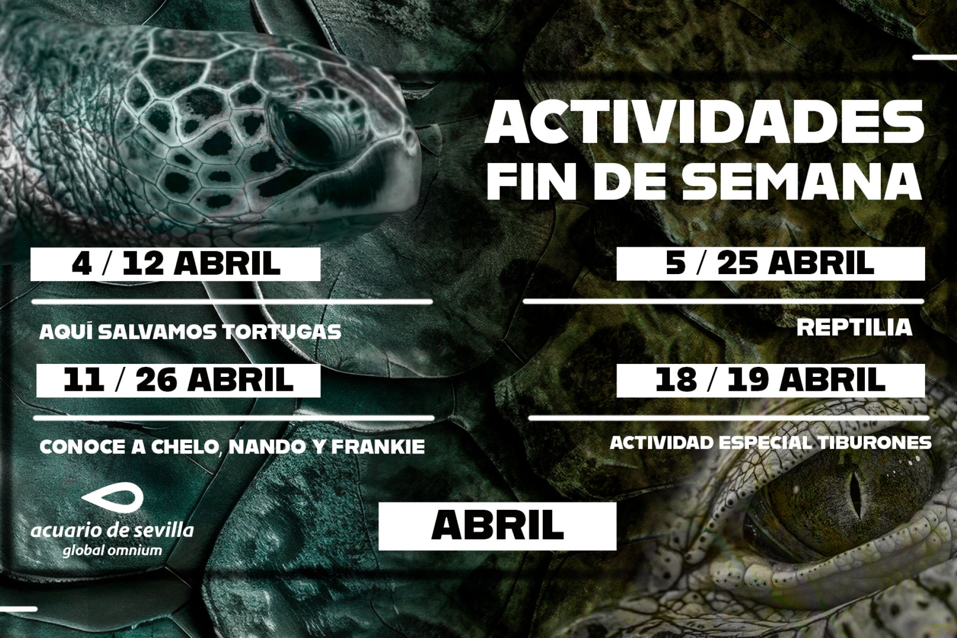 Disfruta con el Club Náutico de las actividades familiares programadas durante el mes de abril en el Acuario, con descuento del 10% para socios en su visita, no acumulable a otras ofertas o promociones. Reserva previa obligatoria, en reservas@acuariosevilla.es