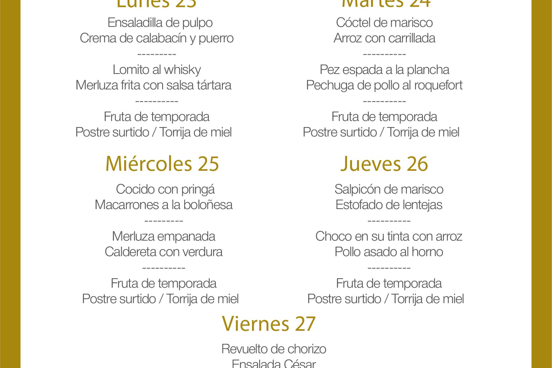 Disponible a mediodía en la cafetería del salón social del lunes 16 al viernes 20 de marzo al precio de 10€/persona (IVA, pan/picos y una bebida incluidos).