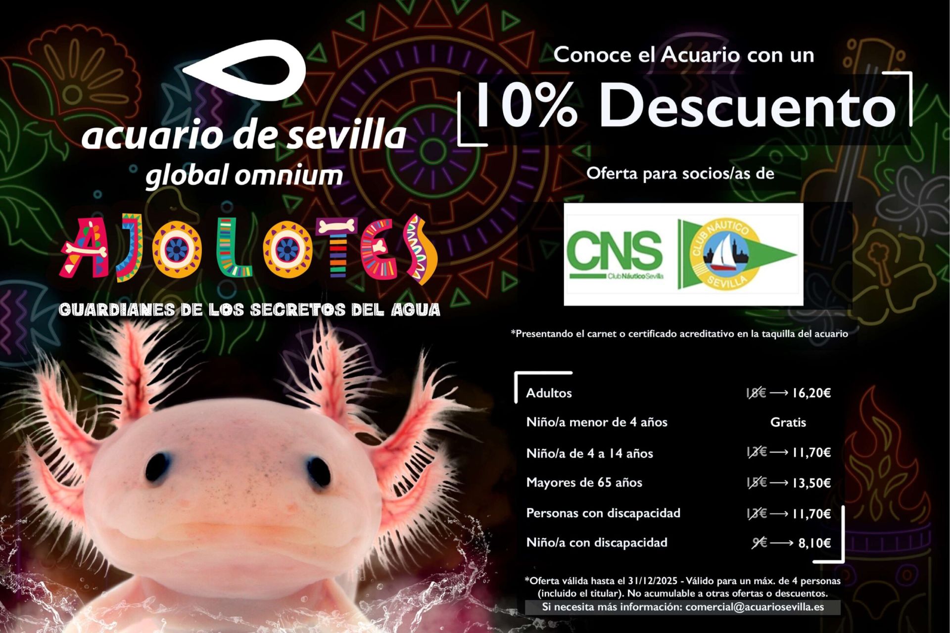 Los socios del Club pueden beneficiarse de un descuento del 10% en su visita, no acumulable a otras ofertas o promociones.