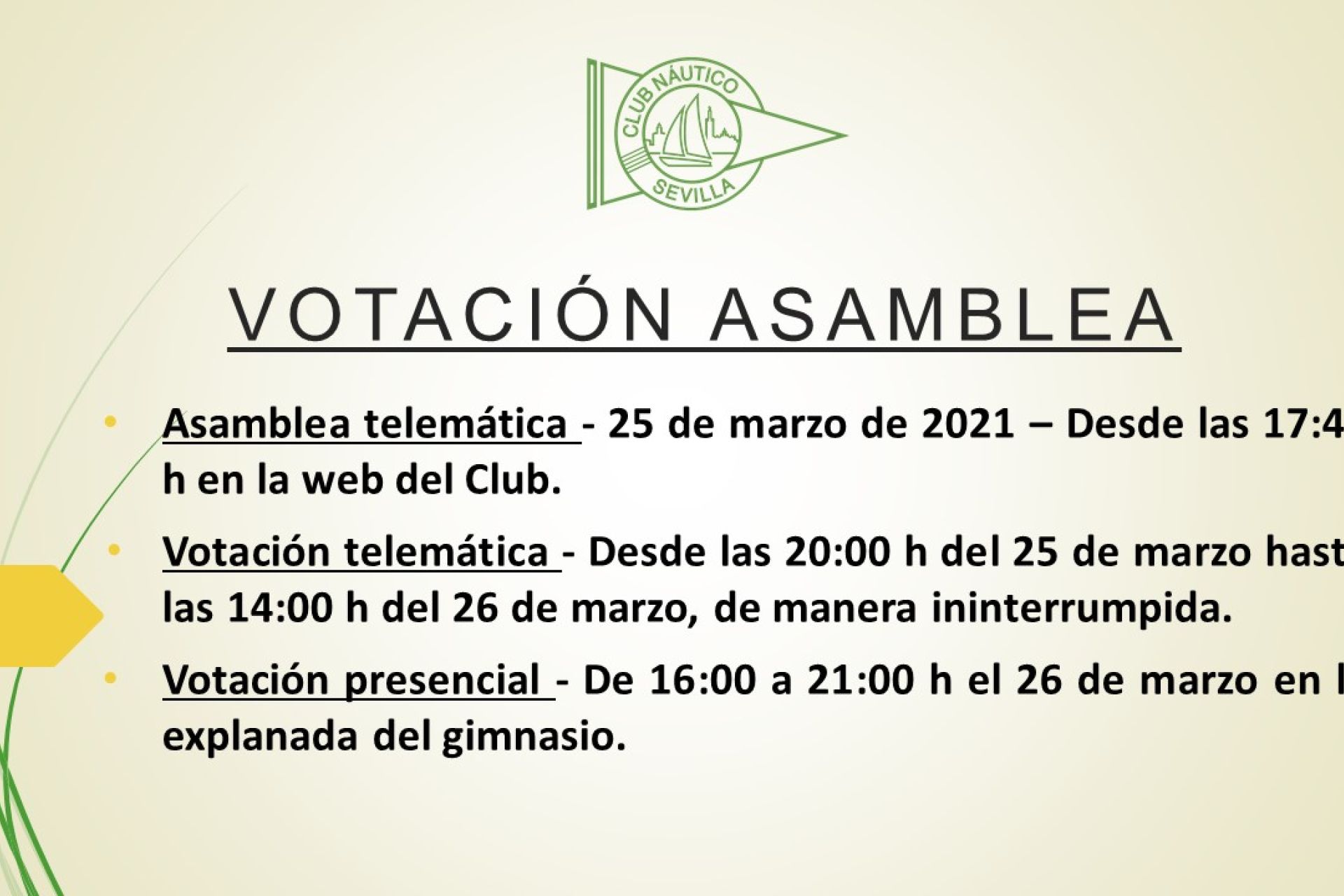 Requisitos para votar en la Asamblea general ordinaria y extraordinaria del Club Náutico Sevilla