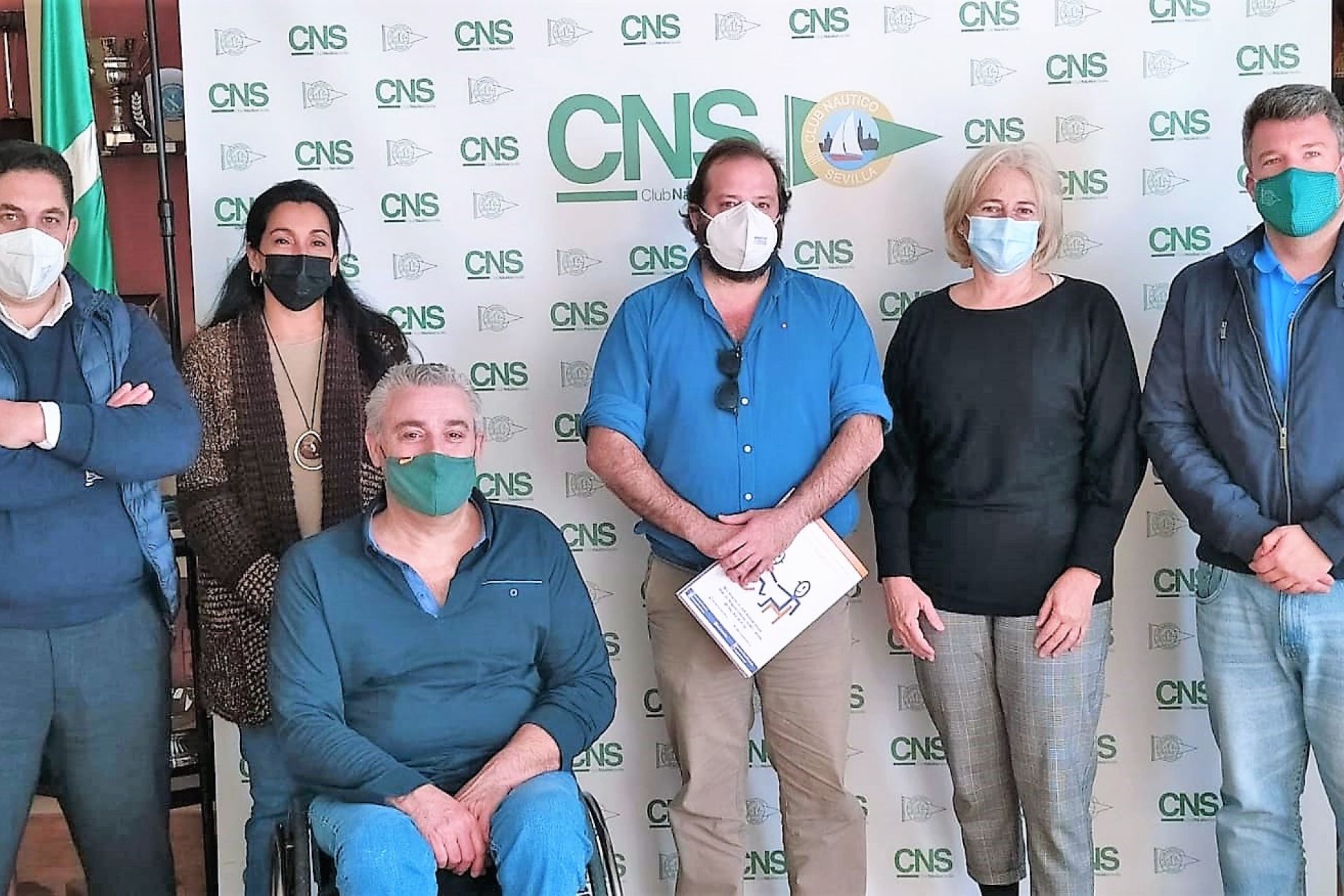 Alicia Caballero, presidenta del Náutico, acompañada para la ocasión por su vicepresidente primero, Mario Leal; el tesorero y la vocal de Régimen interior, Jerónimo Vital y Sandra Camacho, se reunía en la sala de juntas del club hispalense con Juan José Lara y Tomás Martín-Javato, presidente y responsable del Departamento de Accesibilidad de FAMS-COCEMFE Sevilla, respectivamente. Lo hacía en una primera convocatoria para definir líneas de trabajo con el fin de adecuar las instalaciones y establecer futuras colaboraciones.