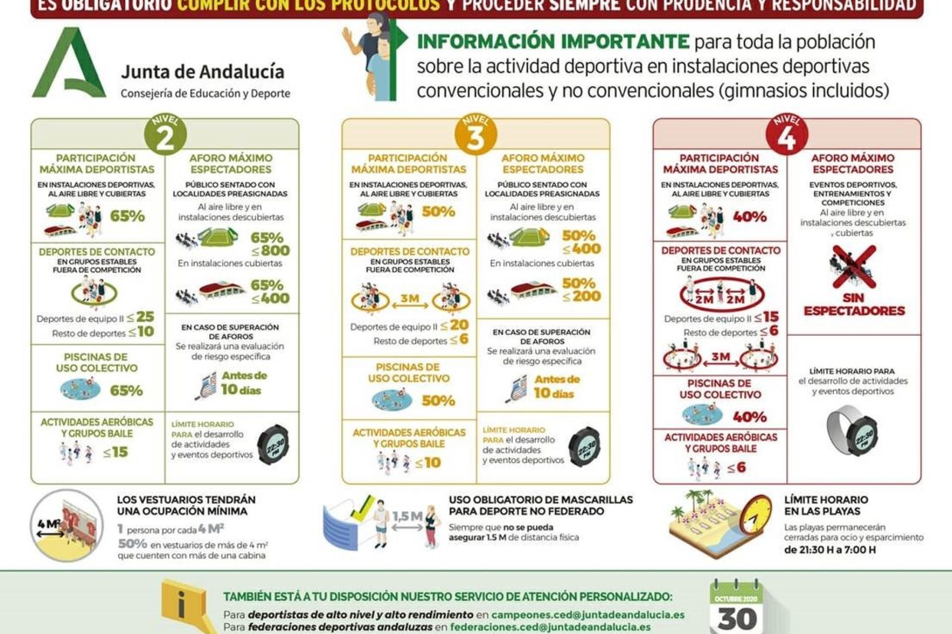 Informamos a los socios de las nuevas medidas establecidas en el Club Náutico Sevilla, según el BOJA Extraordinario número 73 de 30/10/2020, a partir del viernes 30 de octubre según el nivel 4 de alerta sanitaria. Dichas y medidas, al igual que otras adoptadas por el propio club, son de carácter temporal y excepcional por razón de salud pública, para la contención del COVID-19