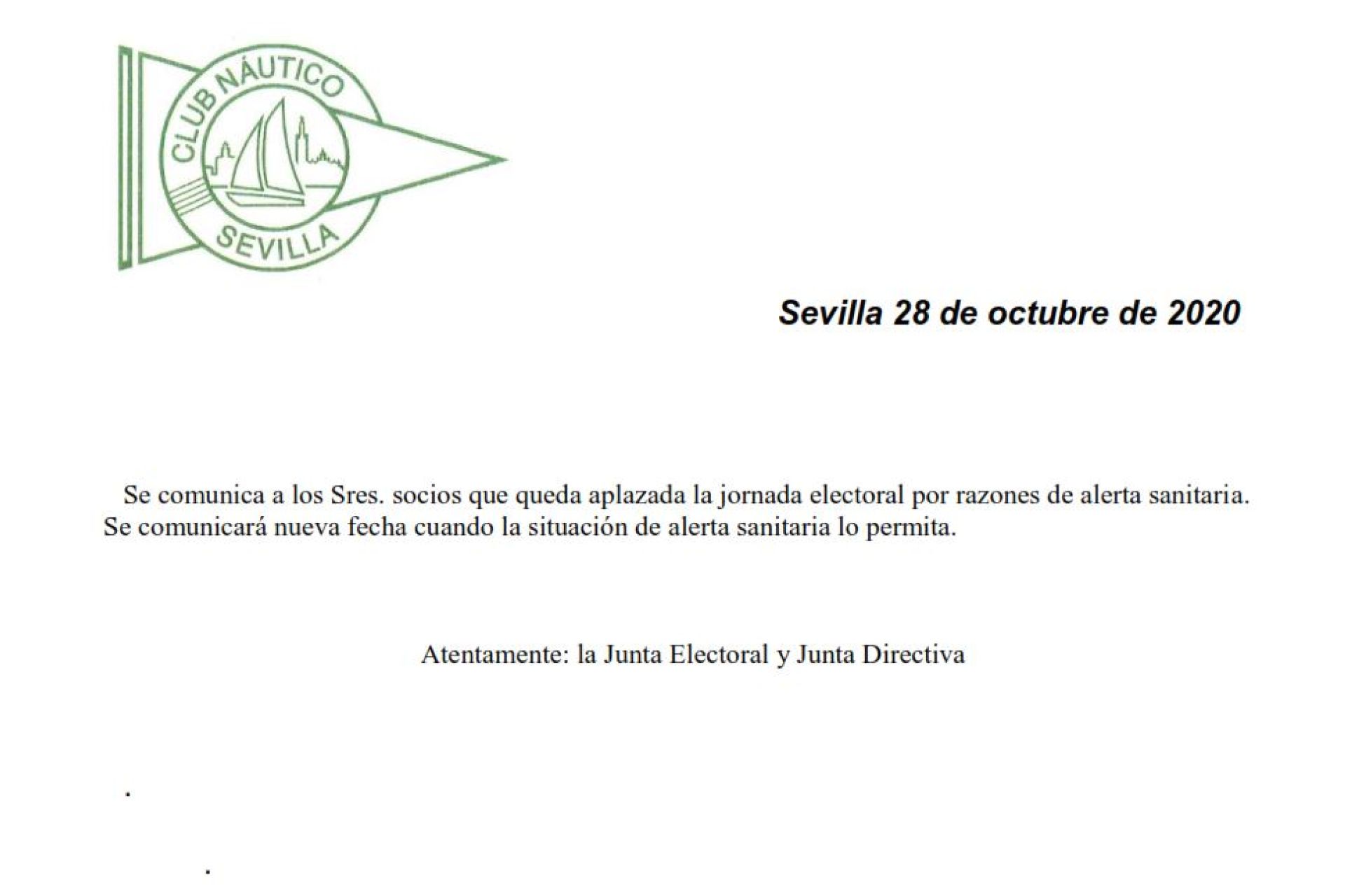AVISO / Aplazamiento de las elecciones a Junta Directiva del Club Náutico Sevilla