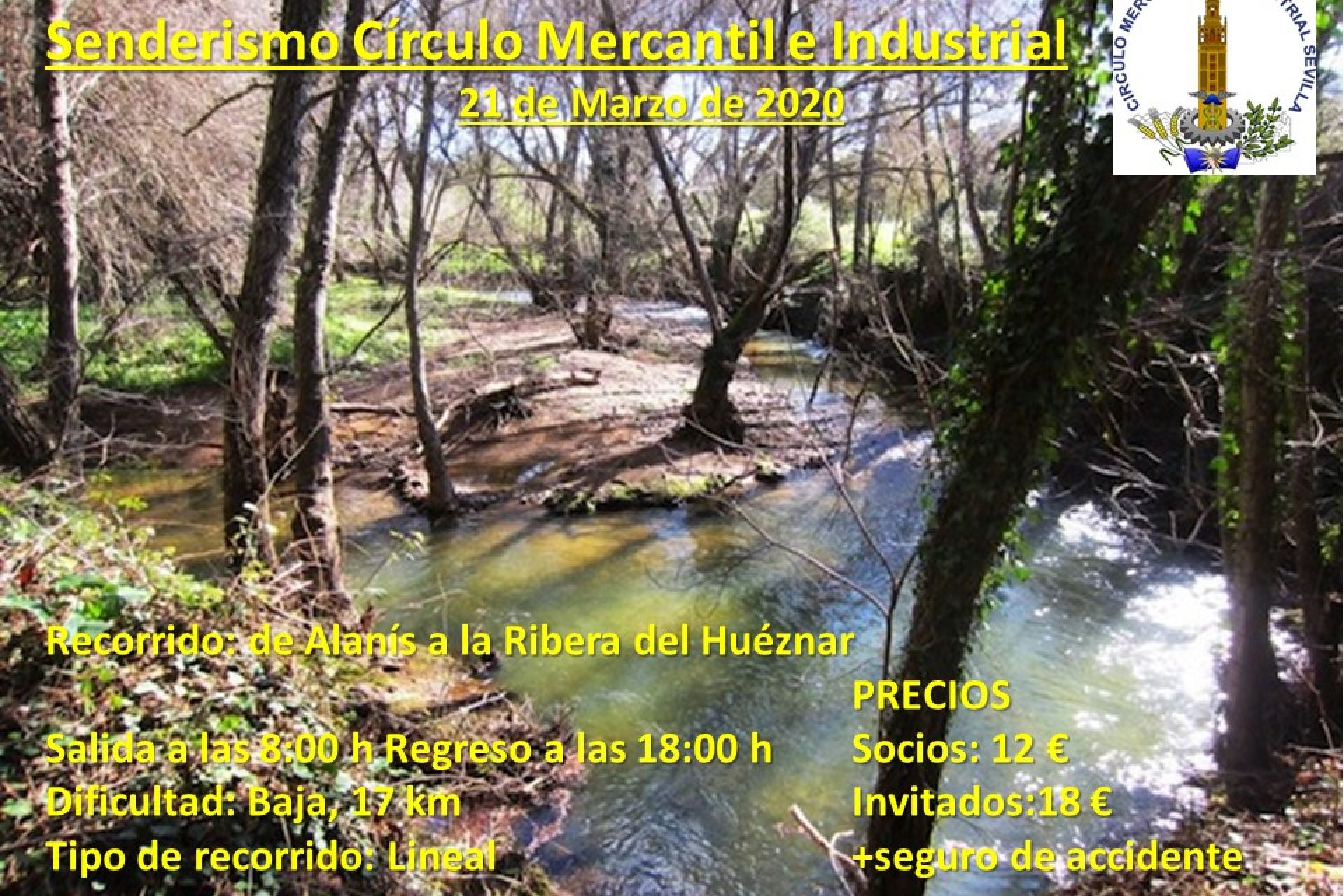 El Club Náutico ofrece a sus socios, adhiriéndose al grupo de senderismo del Círculo Mercantil, la posibilidad de realizar una ruta entre Alanís y la Ribera del Huéznar (Sevilla) el sábado 21 de marzo, para lo que deberán identificarse como tales en su inscripción (18€) para saber la disponibilidad de cara a próximas citas de dicha actividad y realizar así promociones si la demanda es suficiente.