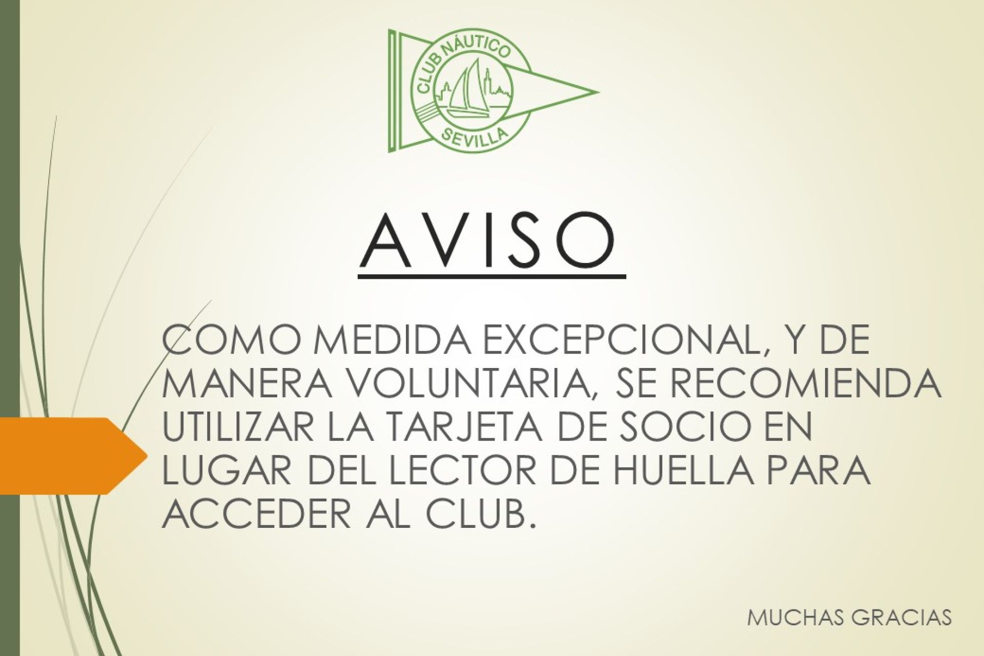 Nota informativa sobre las medidas adoptadas en las instalaciones del Club Náutico en prevención por el COVID-19