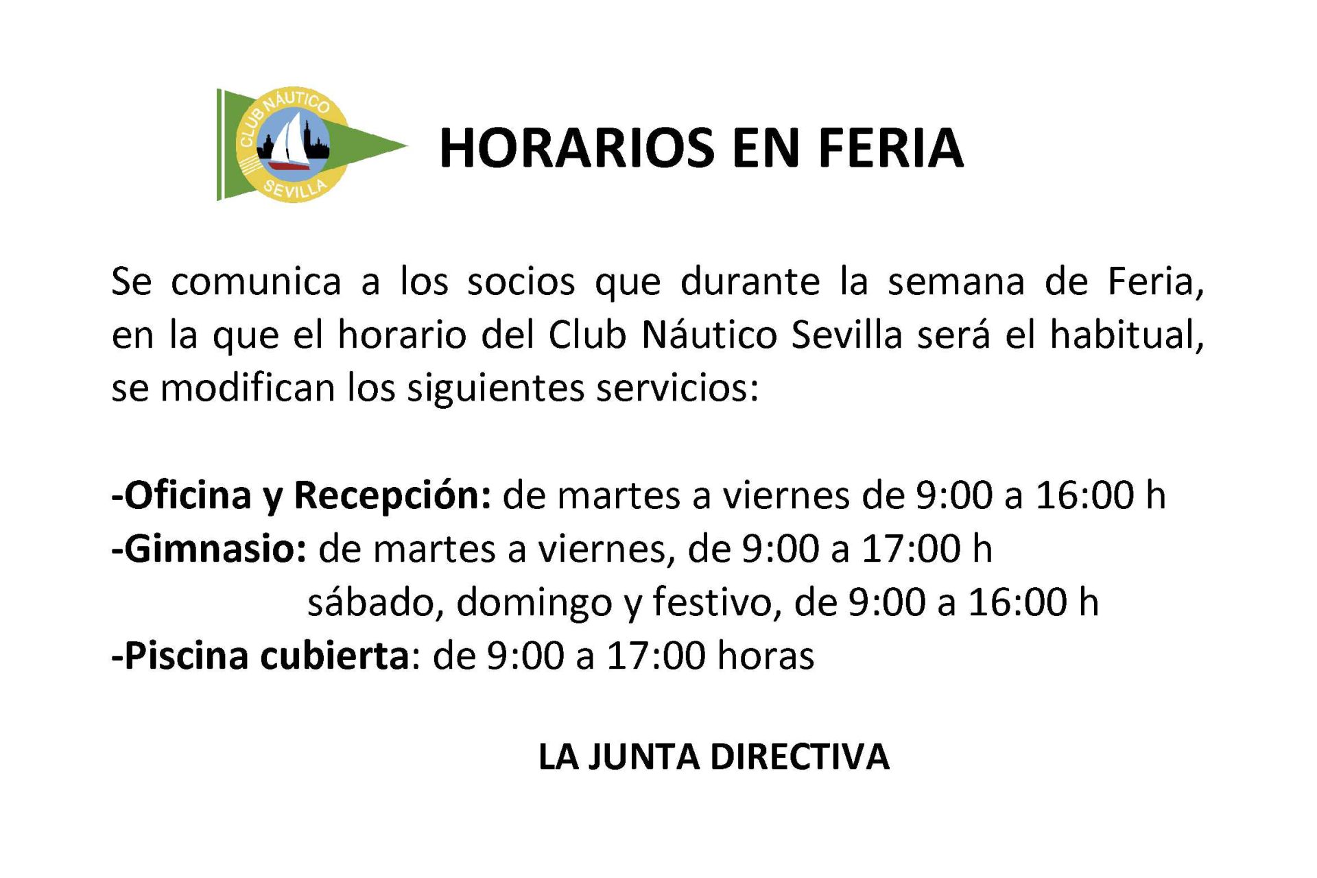 Horarios del Club Náutico en Feria