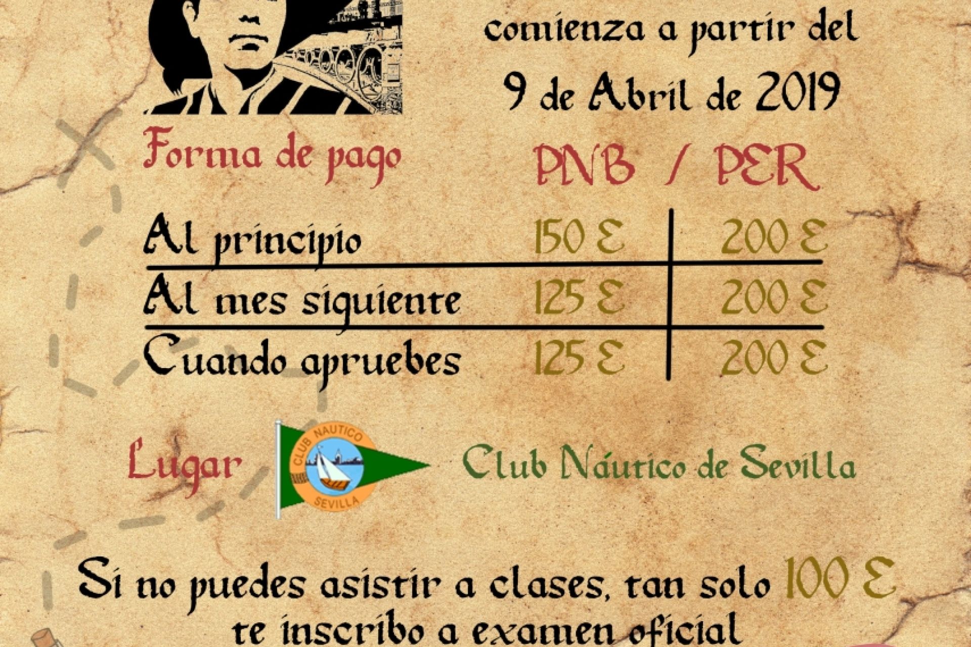 Clases en el Club Náutico Sevilla para la obtención de los títulos de Patrón Básico (PNB) y/o Patrón de Recreo (PER), desde el 9 de abril. Inscripción, 100€ (incluye material didáctico y tasas de derecho a examen). Clases teóricas gratuitas para los socios.