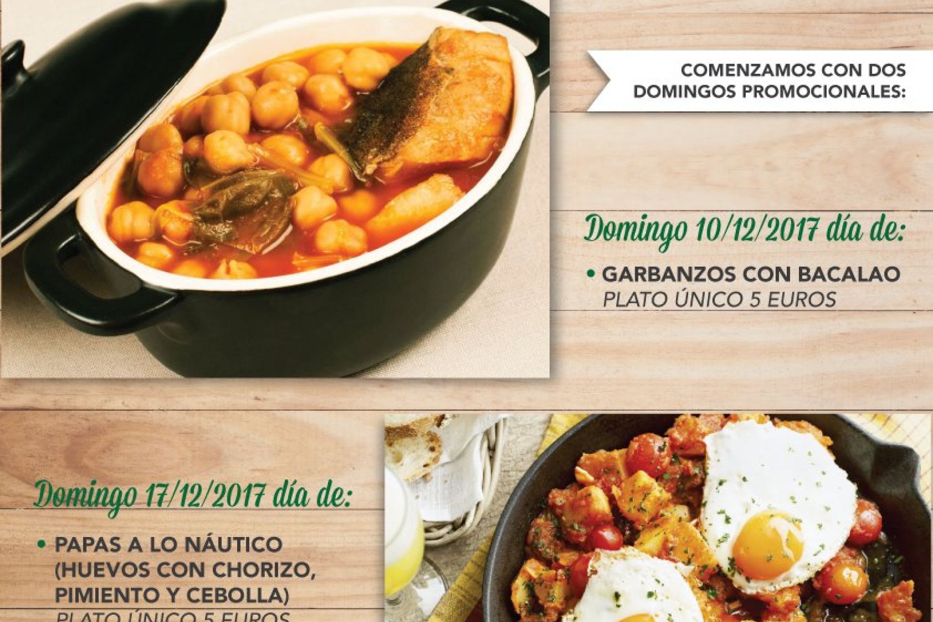 Se realizarán diferentes promociones los domingos, con plato especial del día hasta fin de existencias. El día 10, garbanzos con bacalao. Y el día 17, papas a lo Náutico (huevos con chorizo, pimiento y cebolla).