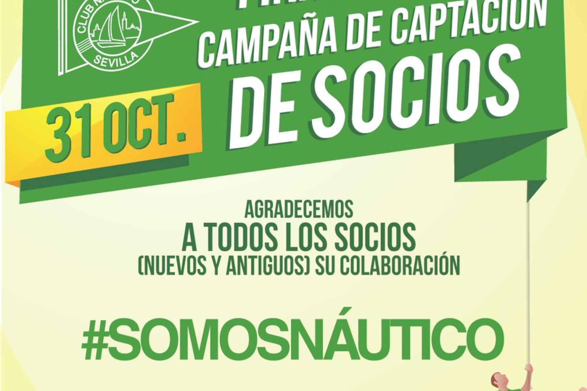 La Junta Directiva del Club Náutico Sevilla comunica a todos los socios que se han alcanzado los objetivos marcados en la campaña de captación aprobada en la Asamblea Extraordinaria de septiembre de 2016. Por este motivo, queremos dar las GRACIAS a todo el cuerpo social por su confianza y comunicar que se dará por finalizada la misma este martes, 31 de octubre de 2017.