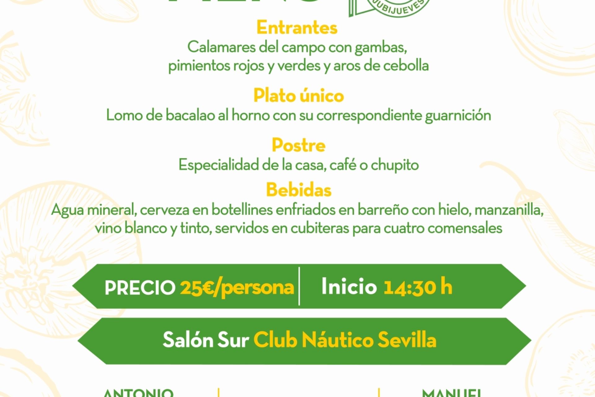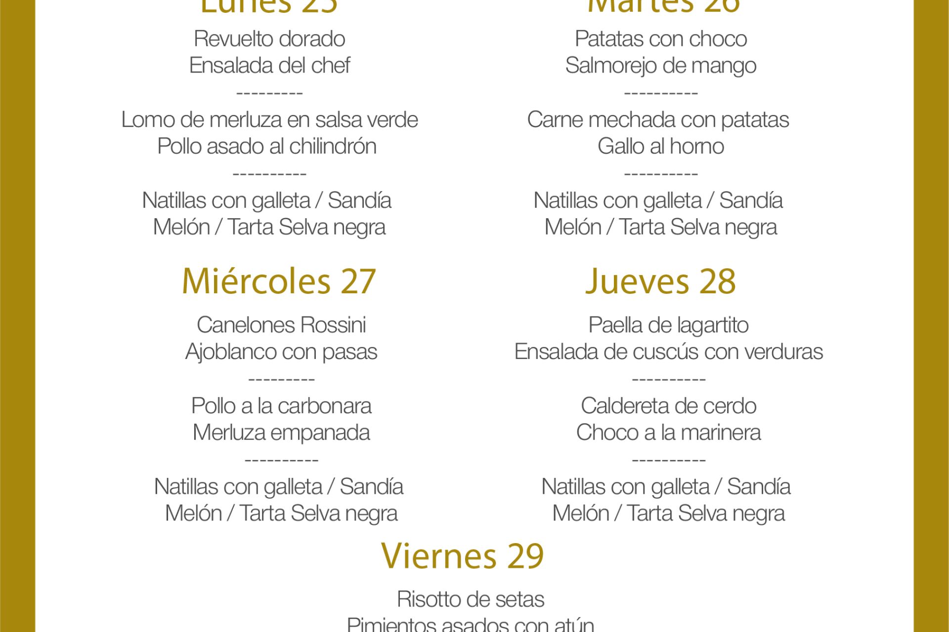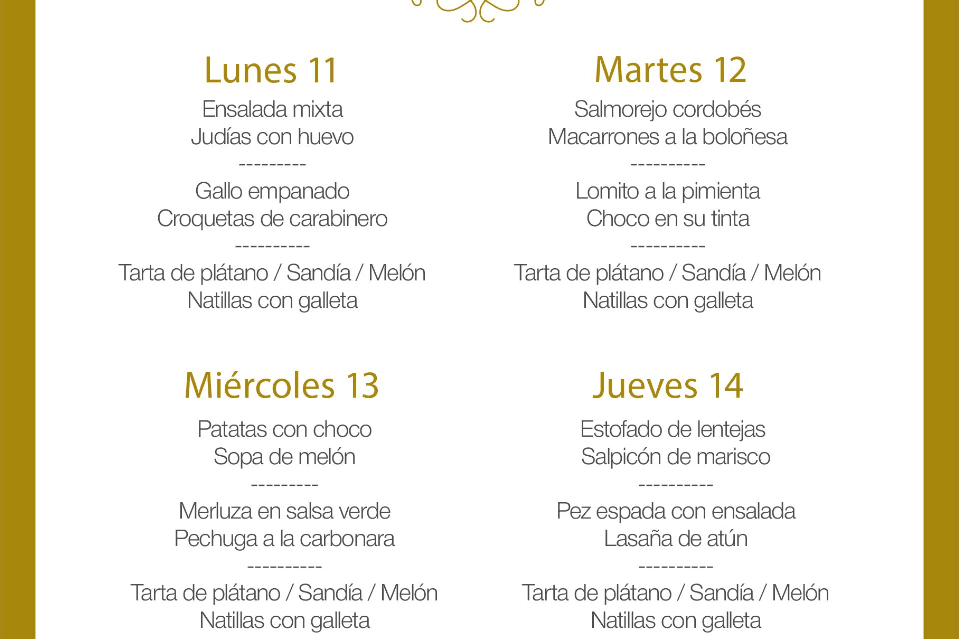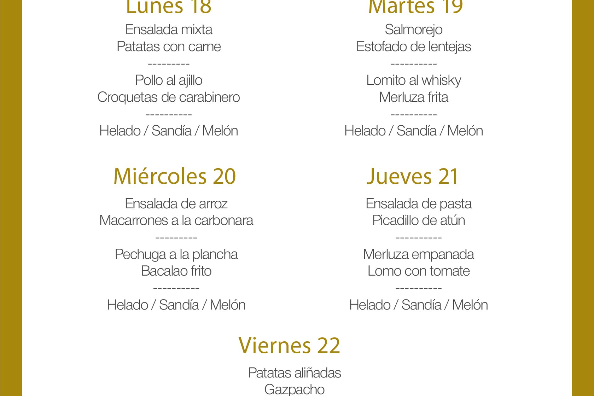 Menú intersemanal del servicio de restauración del Club Náutico