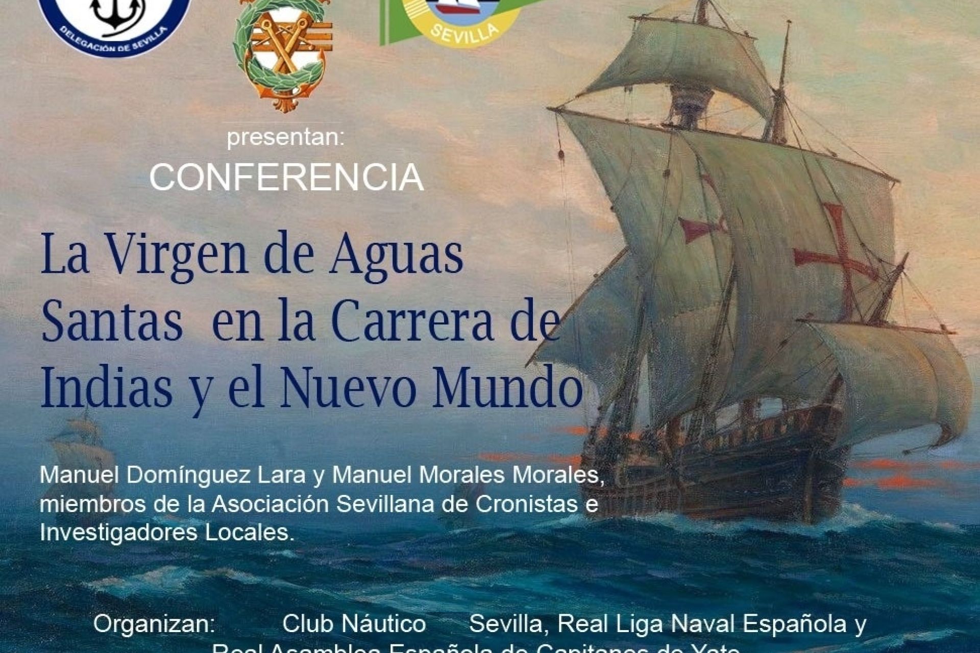 Organizada por la Real Liga Naval Española y la Real Asamblea Española de Capitanes de Yate con la colaboración del Club Náutico Sevilla, la entidad hispalense acoge este miércoles en sus salones sociales (Paseo Remeros de Sevilla s/n) una conferencia bajo el título ‘La Virgen de Aguas Santas en la Carrera de Indias y el Nuevo Mundo’.