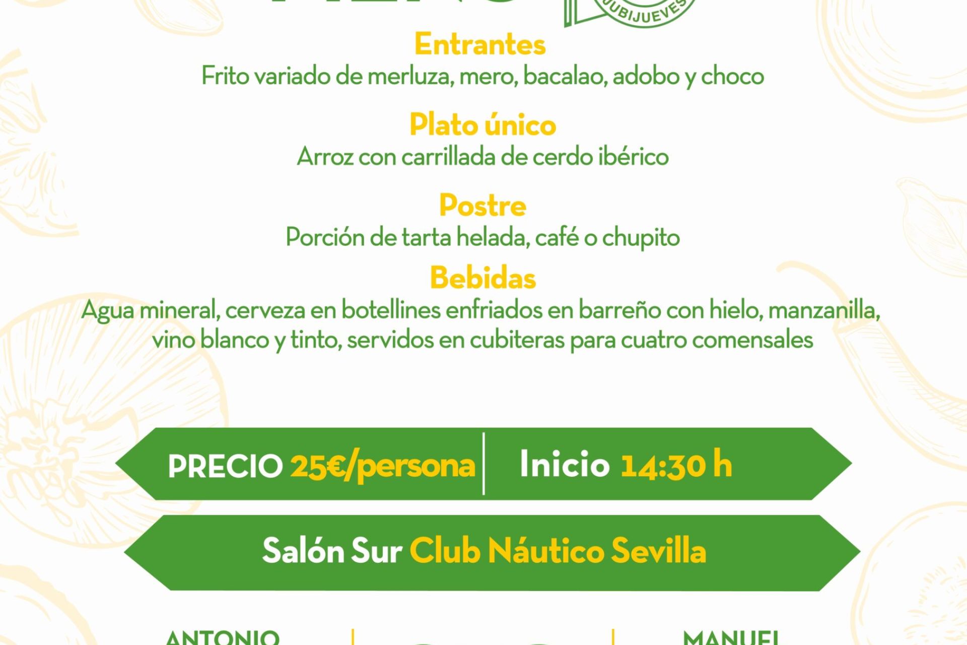 Segunda convocatoria de verano de la tertulia de jubilados del Club Náutico, a celebrar el jueves 31 de julio a las 14:30 h. Se ruega confirmen asistencia hasta este lunes, día 28, como fecha límite, en la oficina o el teléfono del Club 954 454 777.