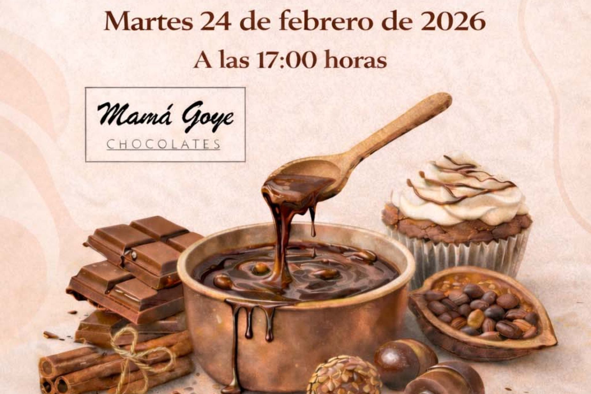 El martes 24 de febrero a las 17:00 h, actividad dirigida a socios e invitados de todas las edades organizada en colaboración con Chocolates Mamá Goye. Reserva de plazas (11€), limitadas a 40 personas, a través del ÁREA DE SOCIOS WEB.