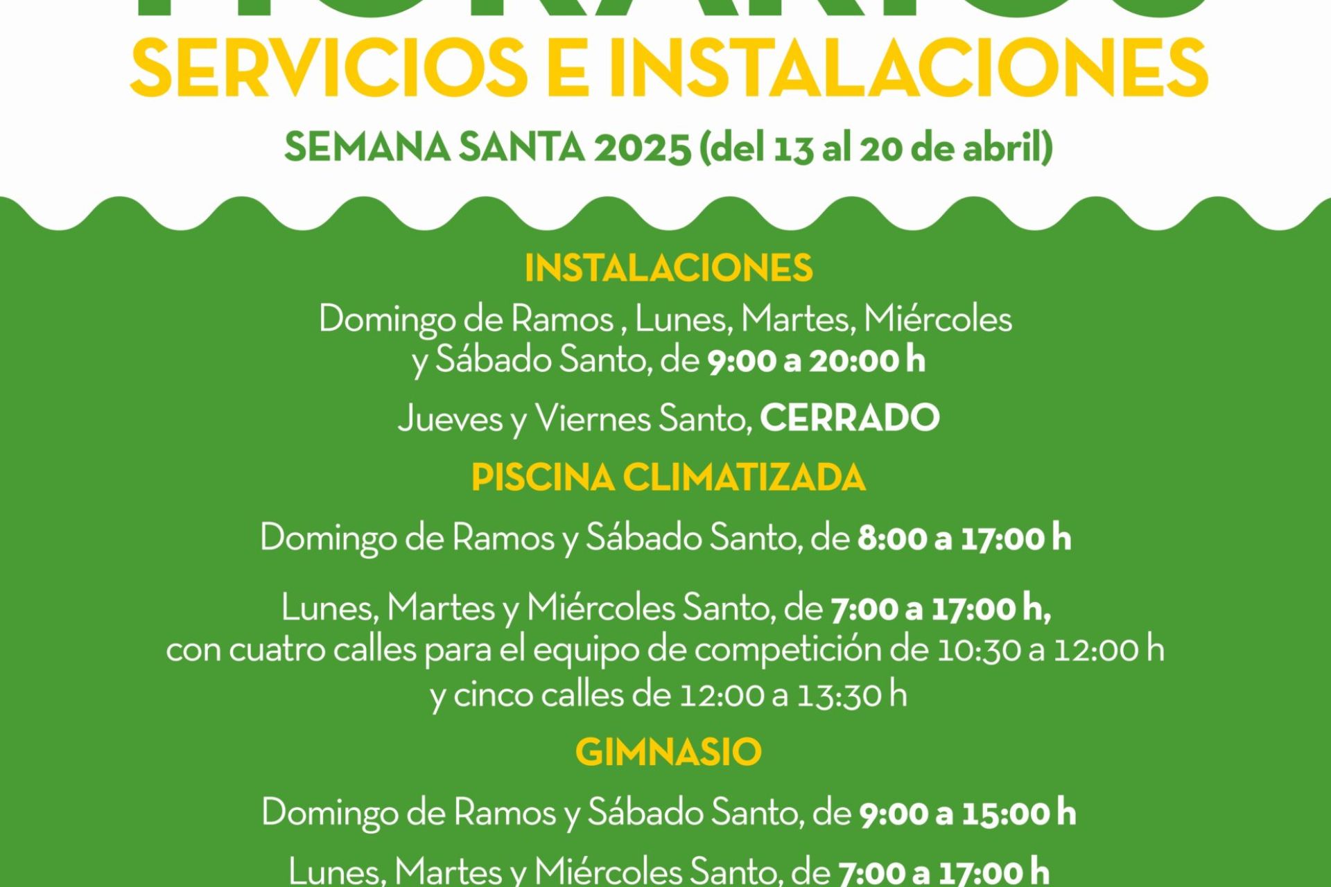 Horarios especiales de las instalaciones y los distintos servicios desde el Domingo de Ramos, 13 de abril, hasta el Domingo de Resurrección, día 20.