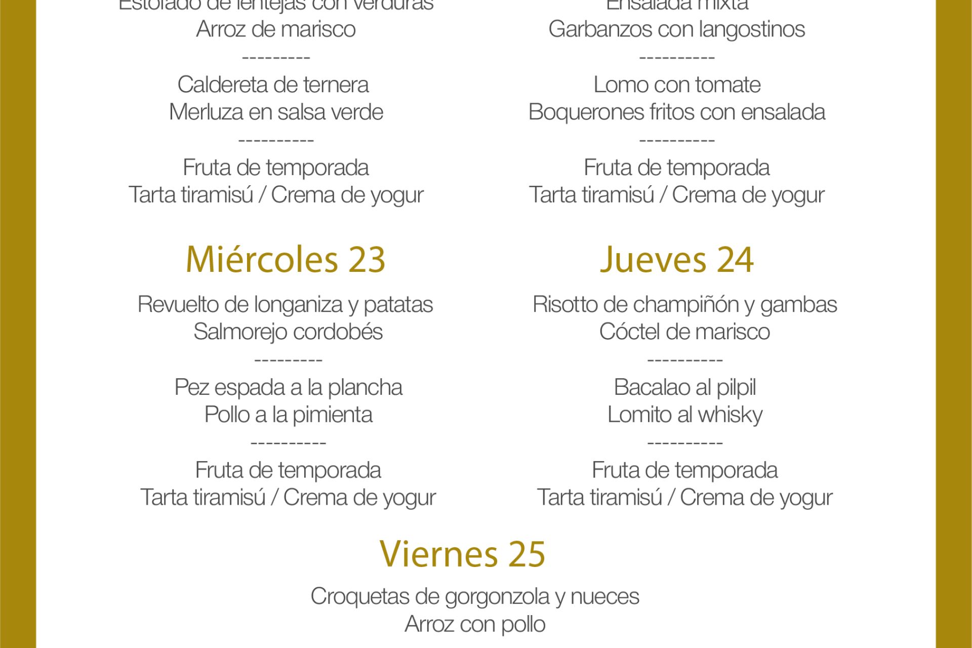 Disponible a mediodía en la cafetería del salón social desde el lunes 21 al viernes 25 de abril al precio de 10€/persona (IVA, pan/picos y una bebida incluidos).