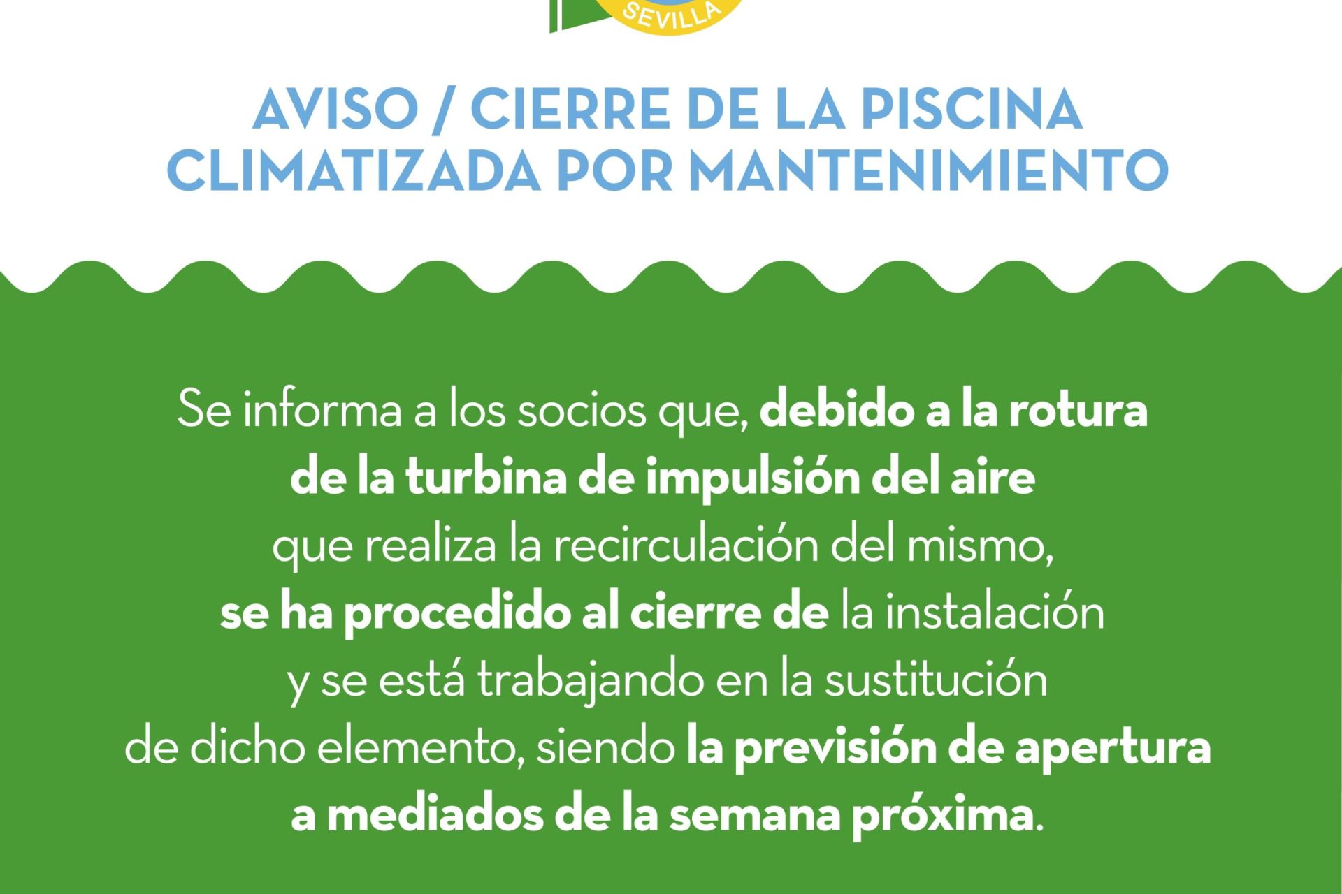 AVISO / Cierre de la piscina climatizada por mantenimiento