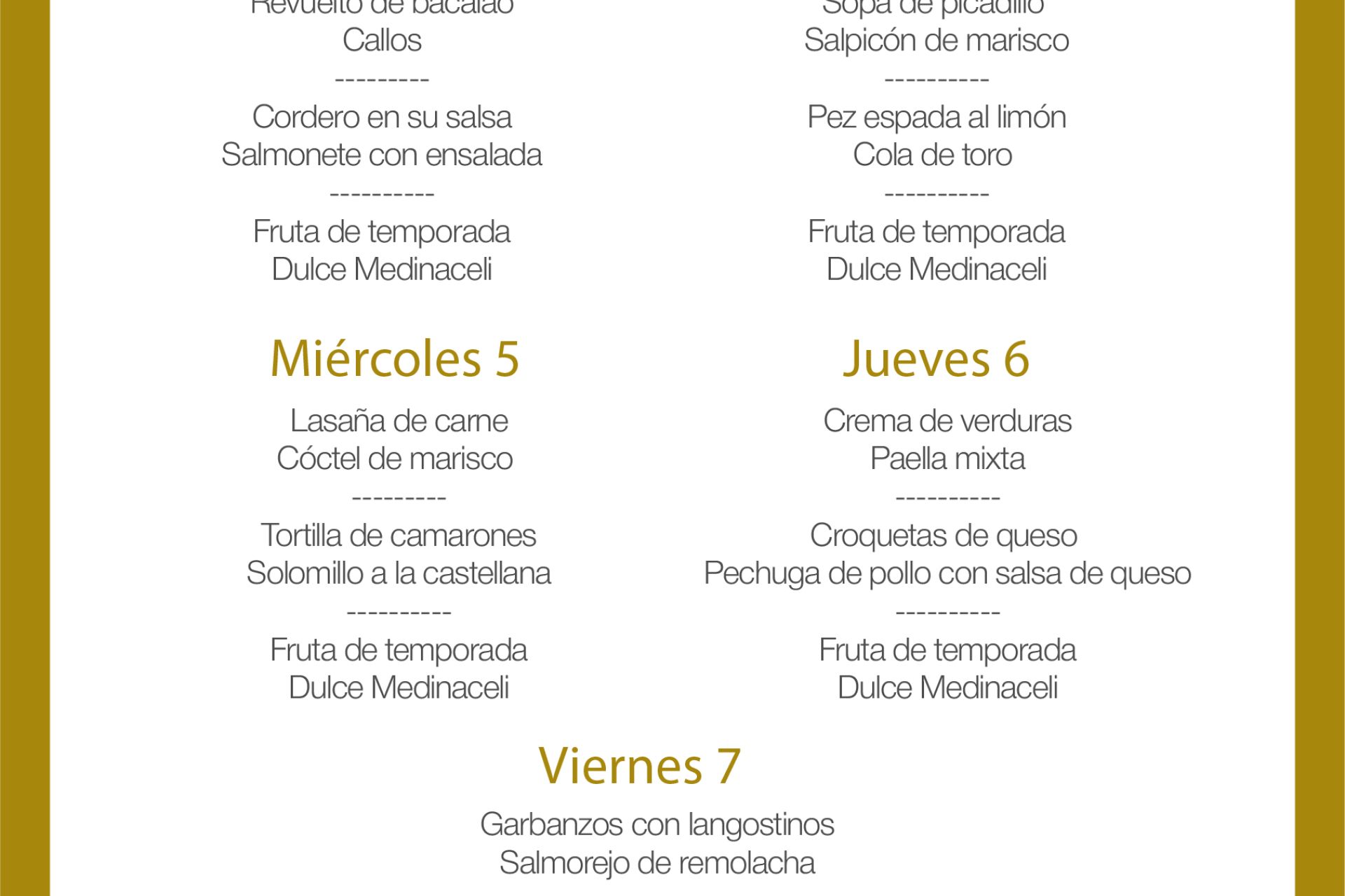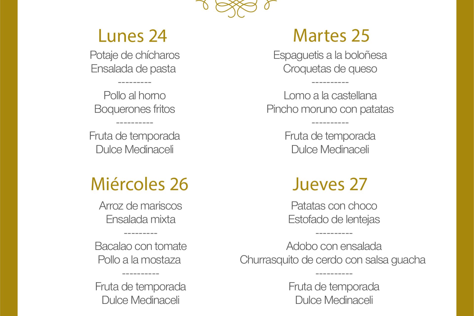 Disponible a mediodía en la cafetería del salón social desde el lunes 24 al jueves 27 de febrero al precio de 10€/persona (IVA, pan/picos y una bebida incluidos). El viernes 28, festivo, no disponible.